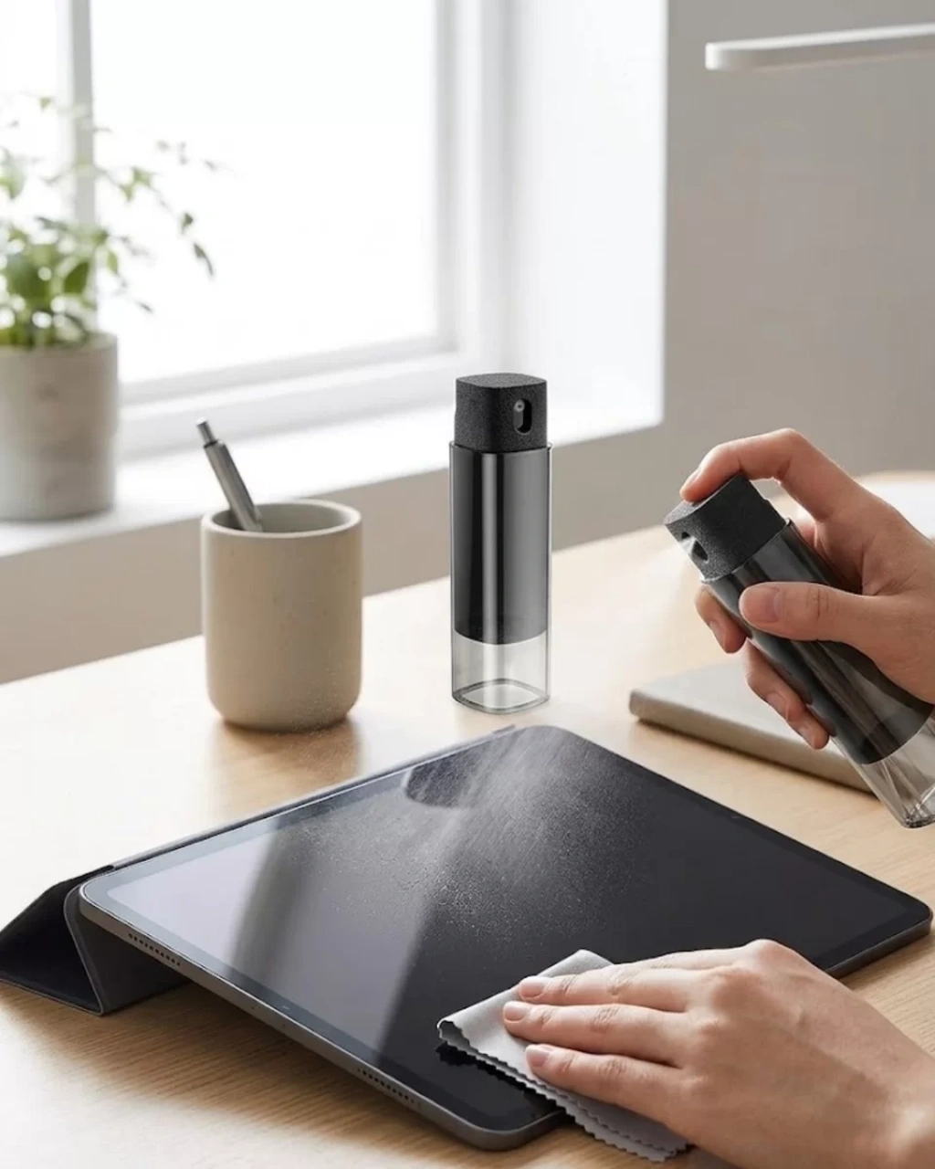 Ekran temizliği, teknolojik cihazların bakımında önemli bir yere sahiptir. Akıllı telefonlar, tabletler ve bilgisayarlar gün boyunca sıkça kullanıldığı için ekran yüzeyinde parmak izi ve kir birikimi oluşabilir. Ekran temizleme sprey şişesi, temizlik solüsyonlarını ekran yüzeyine pratik şekilde uygulamak için tasarlanmış kullanışlı bir üründür.Bu ürün yalnızca boş sprey şişe olarak sunulmaktadır. Kullanıcılar kendi tercih ettikleri ekran temizleme sıvısını şişe içerisine doldurarak kullanabilir. Sprey mekanizması sayesinde sıvı ince ve eşit şekilde püskürtülür. Bu sayede ekran yüzeyine fazla sıvı dökülmeden etkili bir temizlik yapılabilir.Şişe kompakt ve taşınabilir bir tasarıma sahiptir. Bu sayede çantada, masa üzerinde veya araç içerisinde kolayca taşınabilir. Gün içinde telefon veya tablet ekranını temizlemek isteyen kullanıcılar için oldukça pratik bir kullanım sunar.Ekran temizleme sprey şişesi farklı cihaz ekranlarının temizliğinde kullanılabilir. Telefon, tablet, laptop, bilgisayar monitörü, televizyon ekranı ve araç ekranları gibi birçok yüzey için uygundur.Dayanıklı malzemeden üretilmiş olması uzun süreli kullanım imkanı sağlar. Tekrar doldurulabilir yapısı sayesinde ekonomik bir kullanım sunar.