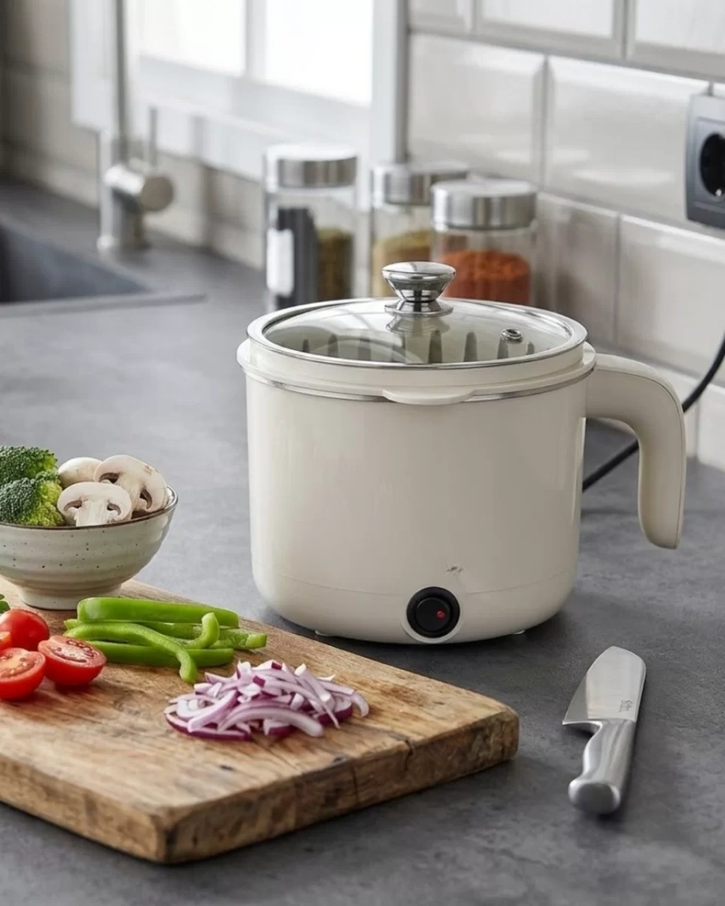 Çok amaçlı elektrikli pişirici, mutfakta pratik ve hızlı yemek hazırlamak isteyen kullanıcılar için geliştirilmiş kullanışlı bir mutfak cihazıdır. Kompakt tasarımı sayesinde mutfakta fazla yer kaplamaz ve küçük mutfaklarda bile rahatlıkla kullanılabilir. Günlük yemek hazırlıklarında büyük kolaylık sağlayan bu ürün, özellikle öğrenci evleri, ofis mutfakları ve pratik yemek hazırlamak isteyen kullanıcılar için ideal bir çözümdür.1 litre kapasiteye sahip olan bu elektrikli pişirici, günlük yemek hazırlıkları için yeterli alan sunar. Çorba, pilav, makarna, sebze yemekleri ve yumurta haşlama gibi birçok farklı yemek türünü kolaylıkla hazırlayabilirsiniz. Tek cihaz ile farklı yemekler hazırlayabilme özelliği sayesinde mutfakta zamandan tasarruf etmenize yardımcı olur.Ürün ile birlikte gelen buharda pişirme tepsisi sayesinde sebzeleri buharda pişirmek mümkündür. Buharda pişirme yöntemi, yiyeceklerin besin değerlerini koruyarak daha sağlıklı yemekler hazırlanmasına yardımcı olur. Bu özellik özellikle sağlıklı beslenmeye önem veren kullanıcılar için oldukça avantajlıdır.Paslanmaz gizli rezistans sistemi sayesinde ısı daha dengeli şekilde dağıtılır ve yemekler eşit şekilde pişer. Gizli rezistans yapısı aynı zamanda cihazın temizliğini kolaylaştırır ve daha hijyenik bir kullanım sunar.Temperli cam kapak tasarımı sayesinde yemeklerin pişme sürecini kolaylıkla takip edebilirsiniz. Dayanıklı cam kapak yapısı uzun ömürlü kullanım sunar ve güvenli pişirme imkanı sağlar.Geniş ağız tasarımı sayesinde cihazın iç kısmına rahat şekilde ulaşabilirsiniz. Bu özellik kullanım sonrasında temizlik işlemini oldukça kolay hale getirir. Ayrıca cihaz üzerinde bulunan ışıklı açma kapama düğmesi sayesinde kullanım oldukça pratik ve kolaydır.Aşırı ısınma ve susuz çalışmayı önleyen emniyet sistemi sayesinde güvenli bir kullanım sunar. Bu özellik cihazın uzun ömürlü kullanımını destekler ve mutfakta güvenli bir pişirme deneyimi sağlar.