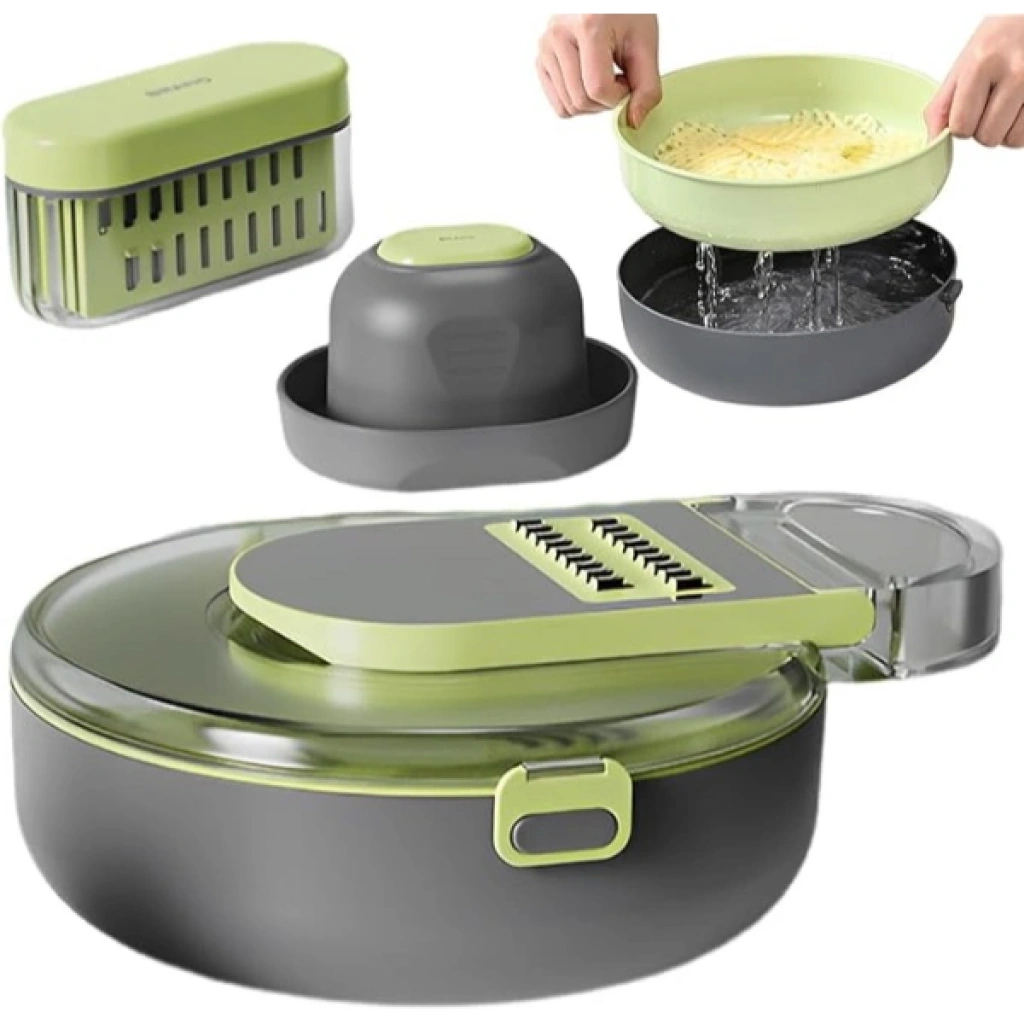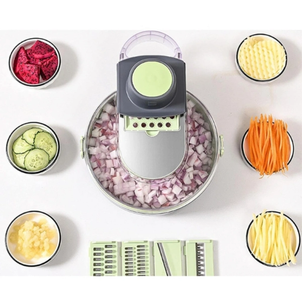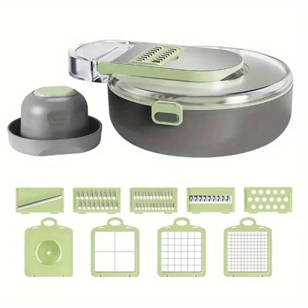 Çok Fonksiyonlu Rende Seti, sebzelerinizi hızlı ve pratik bir şekilde dilimleme, doğrama ve rendelenmesini sağlar. Ürün, mutfakta zaman kazandıran çok fonksiyonlu bir araçtır. Üzerinde farklı fonksiyonlar için kullanılabilecek çeşitli bıçaklar ve rende alanları bulunur. Sebzeleri dilimlemek, doğramak, rendelemek ve ince ince kesmek için farklı başlıklar ve fonksiyonlar içerir. Sebzeleri hızlıca doğrayıp dilimlemenizi sağlayan bıçakları sayesinde mutfakta işleriniz hızlanır. Sağlam yapısı sayesinde uzun ömürlüdür ve dayanıklı plastik ve metal malzemelerden üretilmiştir. Gıda ile temas eden bölümleri sağlıklı ve güvenli malzemelerden yapılmıştır. Sebzeleri farklı şekillerde doğrayabilir ve kesebilirsiniz. Aparatı ile sebze-meyve kabı olarak ve süzgeç olarak kullanılabilir. Ürün yıkamaya uygun olup, 60°C altındaki sıcaklıklarda yıkanabilir.Bu 9 fonksiyonlu sebze doğrayıcı, yemek hazırlığınızı kolaylaştırırken, aynı zamanda çok yönlü kullanımıyla pratik bir yardımcıdır.Paket İçeriği1 adet Çok Fonksiyonlu Rende Seti
