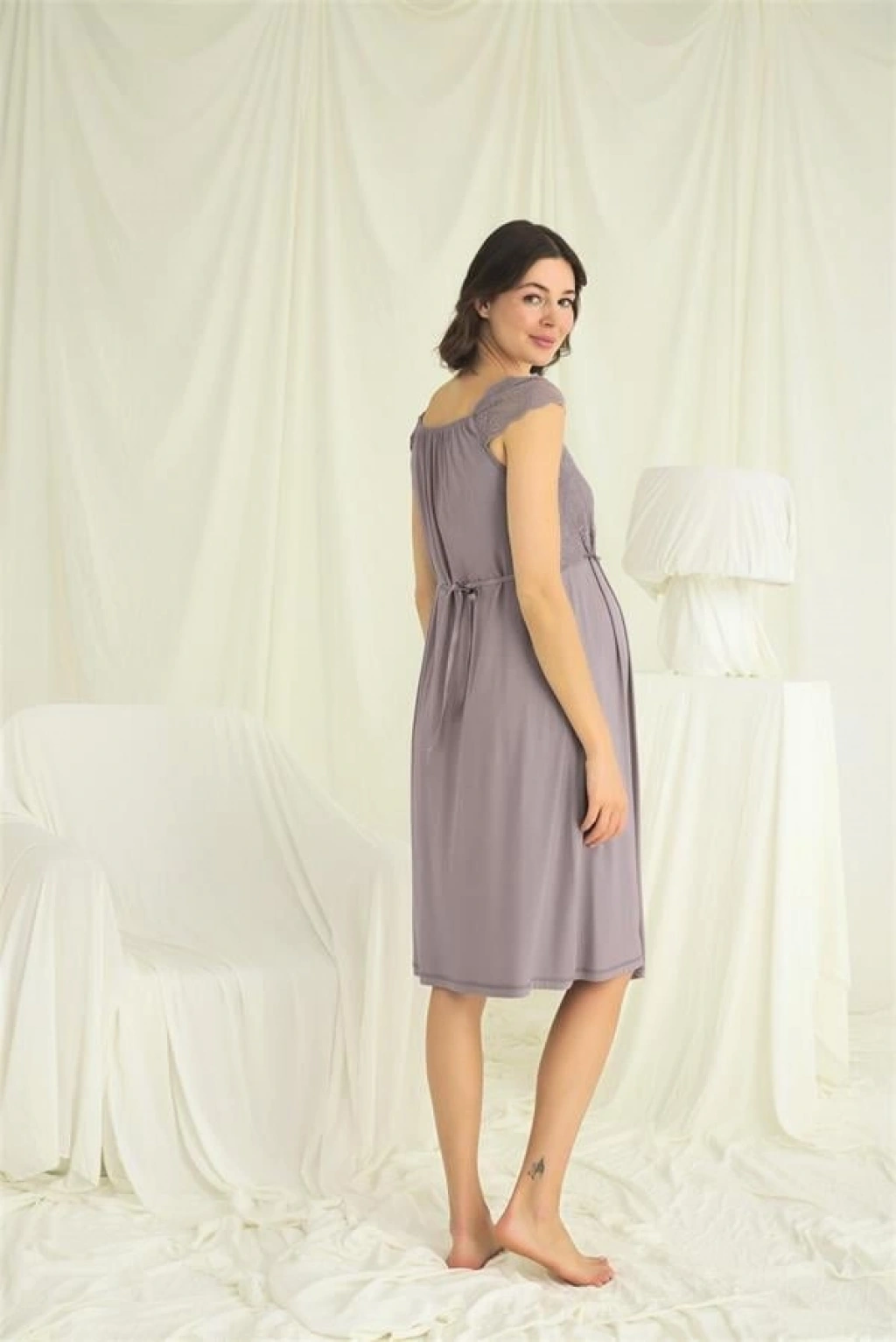 Gecelik: Gri renklidir, kare yakalıdır, kısa kolludur, kolu, omzu ve yakası dantellidir, yakasının altı düğmelidir, emzirme için düğmelerden açılır durumdadır, ayarlanabilir lastik askılıdır, örme kumaştır.
