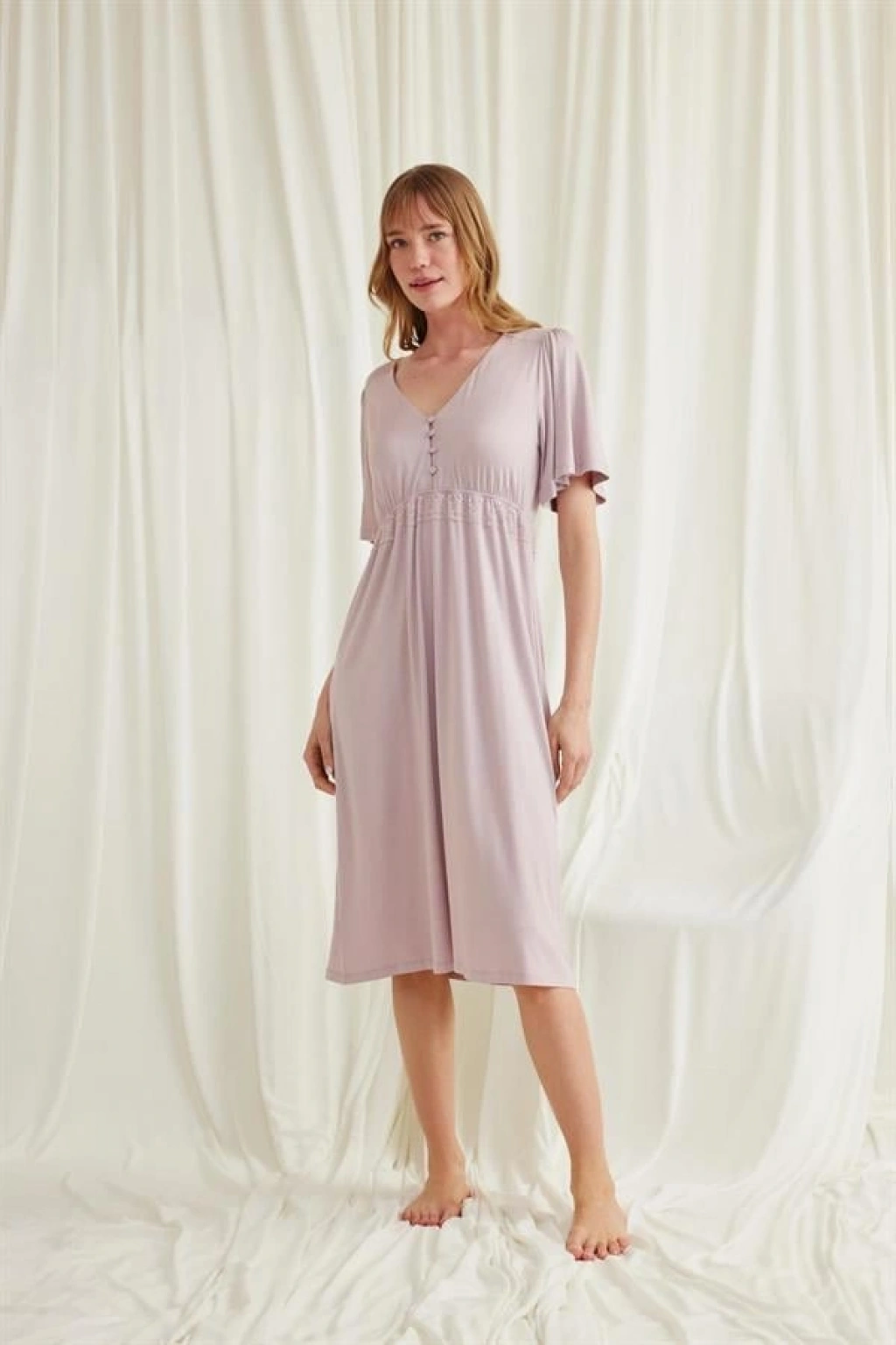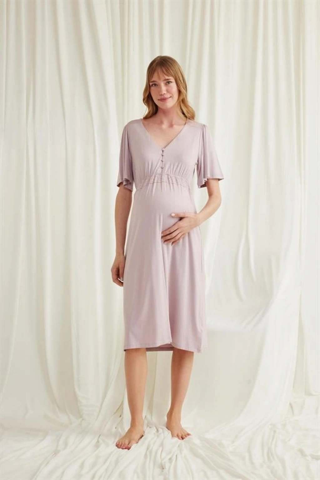 VipMarketim Dantelli Önü Düğmeli Hamile Lohusa Viskon Gecelik