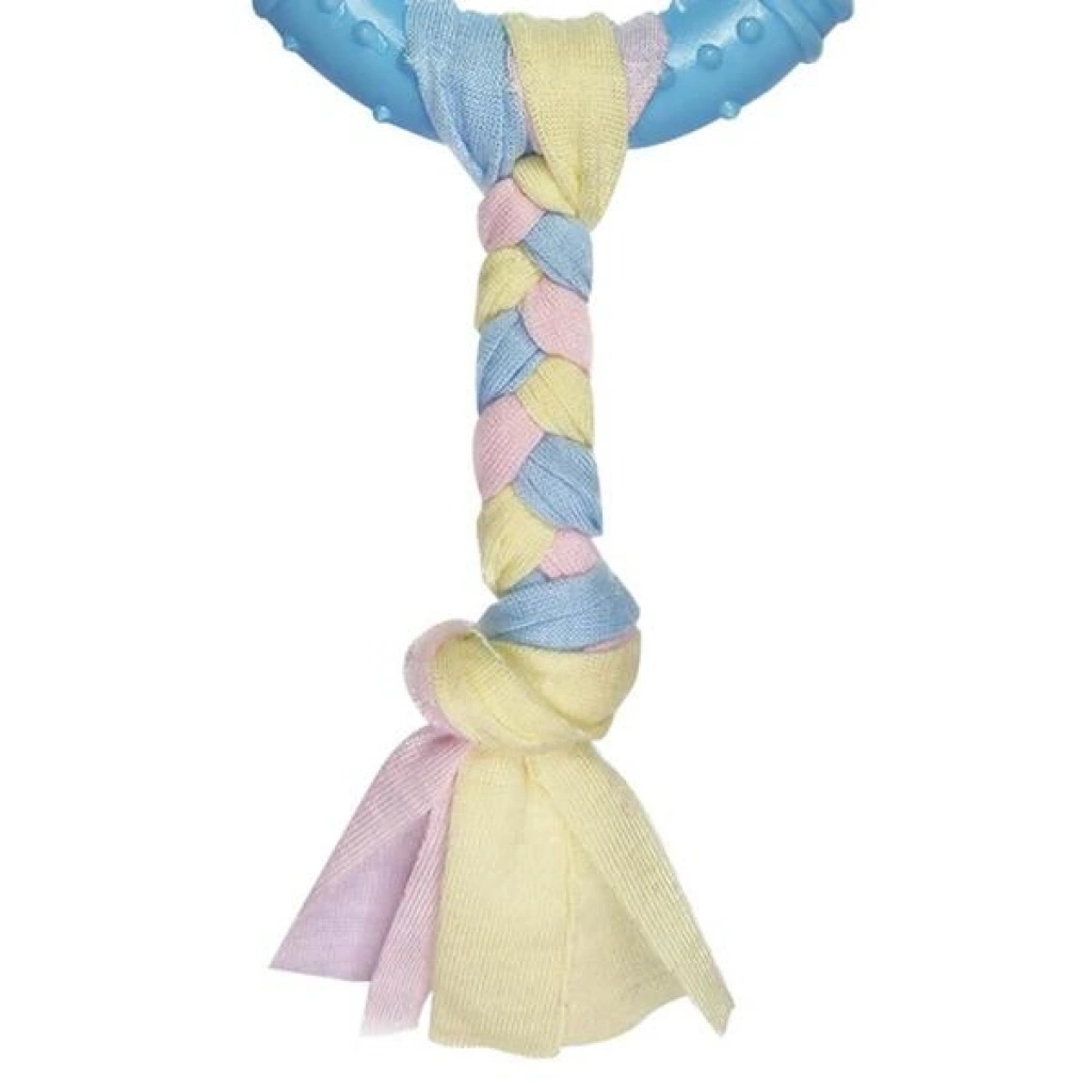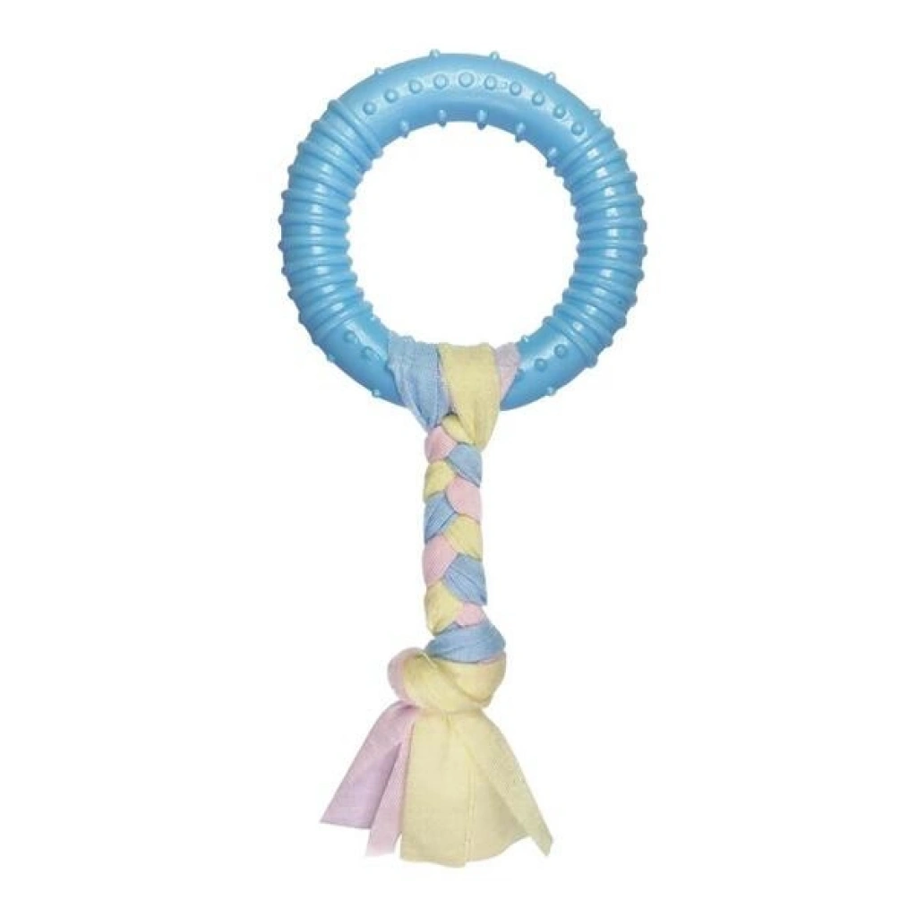 Dayanıklı Köpek Diş Kaşıyıcı ve Çiğneme Oyuncağı, köpeklerin doğal çiğneme ve oyun ihtiyaçlarını karşılamak üzere tasarlanmış güvenli ve eğlenceli bir oyuncaktır. Sağlam ve esnek malzemeden üretilen halkalı yapısı, diş kaşıma dönemindeki yavru köpekler için ideal bir rahatlama sağlar. Üzerindeki kabartmalı yüzeyler diş ve diş etlerini nazikçe masaj yaparak ağız sağlığını destekler. Renkli örgü kumaş tutucu kısmı köpeğin dikkatini çeker ve interaktif çekme-çekiştirme oyunları için mükemmeldir. Ev içi ve dış mekân kullanımına uygun olan bu oyuncak, köpeklerin enerjilerini doğru kullanmalarına yardımcı olurken aynı zamanda stres azaltıcı bir oyun deneyimi sunar. Küçük ve orta ırklar için ideal bir oyun arkadaşıdır. Paket İçeriği1 Adet Köpek Diş Kaşıyıcı ve Çiğneme Oyuncağı