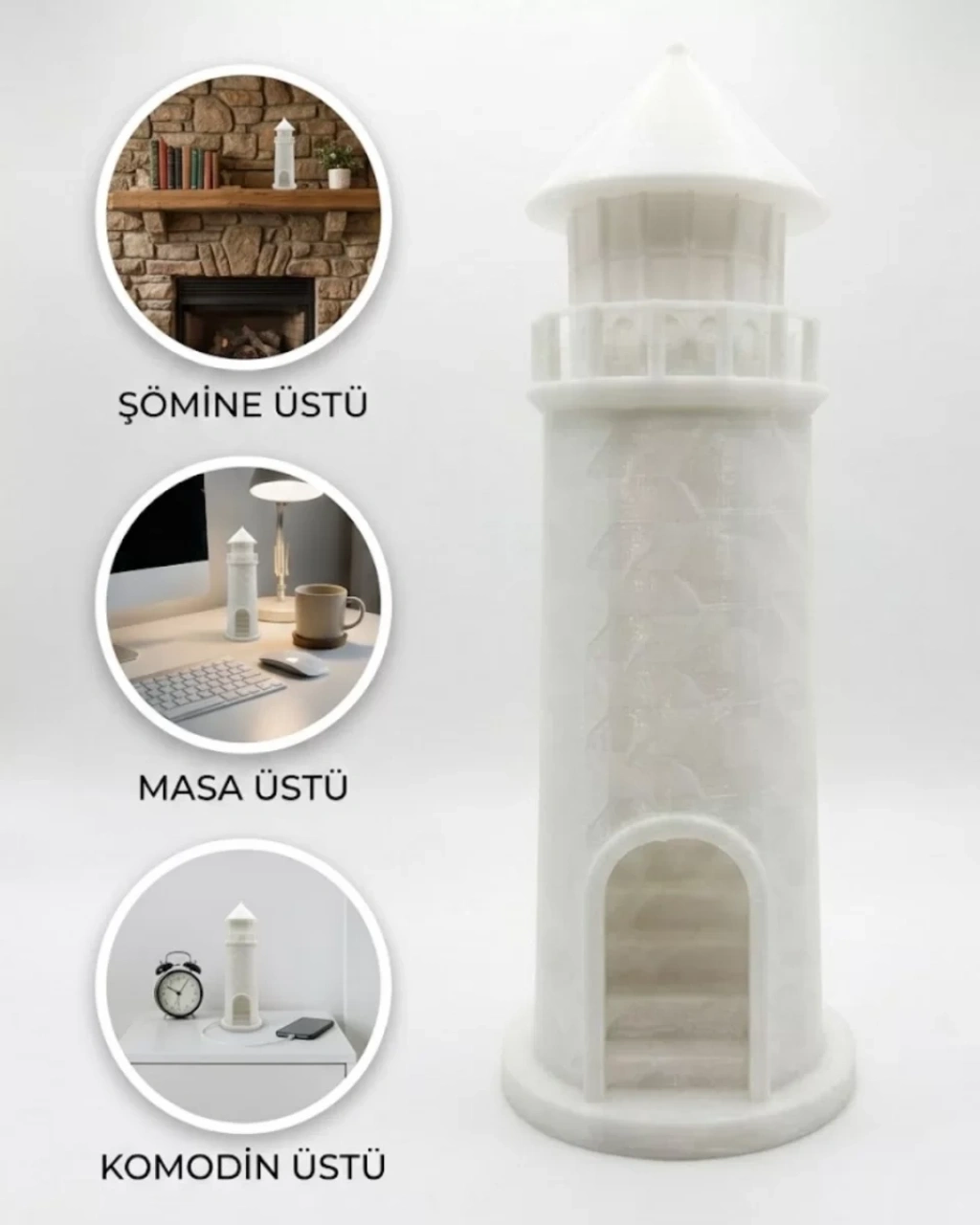 Marin stil dekorasyonun vazgeçilmez parçalarından biri olan 3D deniz feneri obje, evinizde sahil esintisi oluşturmak için ideal bir dekoratif üründür. Üç boyutlu tasarım detayları sayesinde gerçekçi bir görünüm sunar ve bulunduğu ortamda dikkat çeken bir aksesuar haline gelir.Salon, balkon, yazlık ev, çocuk odası ya da ofis dekorasyonunda rahatlıkla kullanılabilir. Özellikle deniz temalı aksesuarlarla birlikte kombinlendiğinde bütüncül bir dekorasyon sağlar. Beyaz rengi sayesinde ferah ve aydınlık bir görünüm sunar.Dayanıklı yapısı sayesinde uzun süreli kullanım sağlar. Hafif olması nedeniyle istenilen alana kolayca taşınabilir. İç kısmı dekoratif amaçlı mum veya led ışık ile kullanılmaya uygundur. Hem kendiniz için hem de hediye alternatifi olarak değerlendirilebilir.