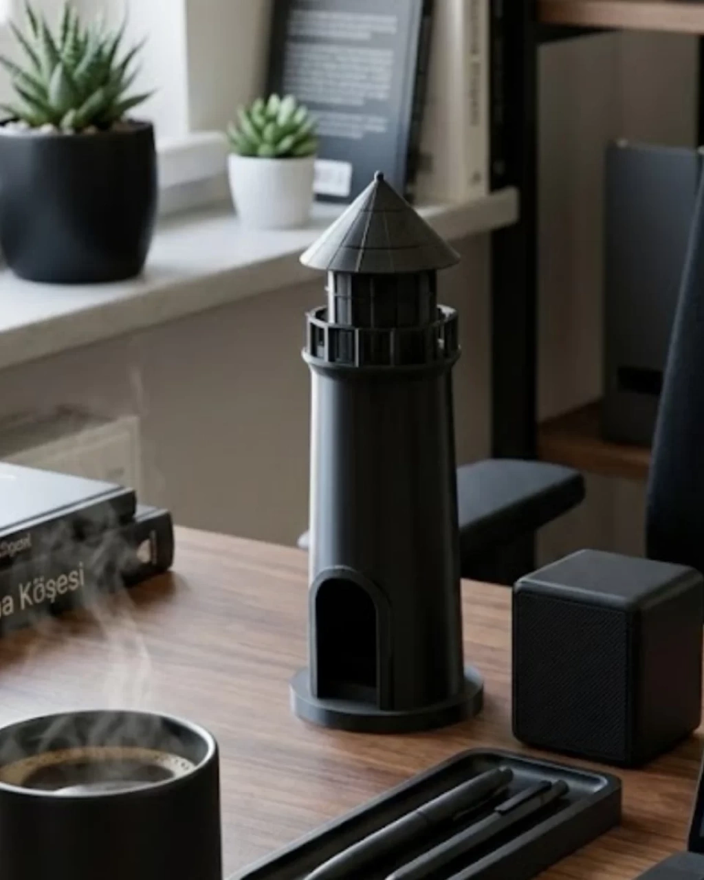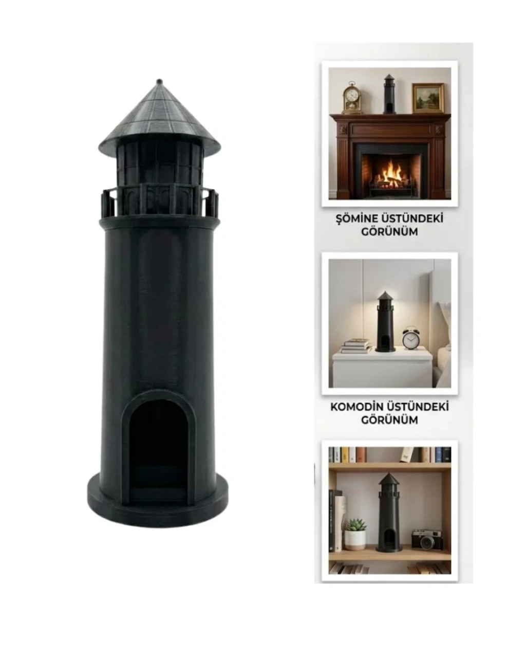 Modern ve karakterli bir dekoratif obje arayanlar için tasarlanan 3D siyah deniz feneri, yaşam alanlarına güçlü bir stil kazandırır. Üç boyutlu detaylı tasarımı sayesinde gerçekçi bir görünüm sunar ve bulunduğu ortamda dikkat çekici bir aksesuar haline gelir. Minimal siyah rengi, özellikle modern, endüstriyel ve maskülen dekorasyon stilleriyle mükemmel uyum sağlar.Salon sehpası, TV ünitesi, kitaplık rafı, çalışma masası veya antre dresuarı üzerinde rahatlıkla konumlandırılabilir. Kompakt yapısı sayesinde fazla yer kaplamaz ancak bulunduğu alanda güçlü bir dekoratif etki oluşturur.Dayanıklı malzemeden üretilmiş olup hafif yapısı sayesinde kolay taşınabilir. İç kısmına LED mum veya küçük ışık yerleştirilerek ambiyans aydınlatması olarak da kullanılabilir. Ev dekorasyonu, ofis aksesuarı veya hediyelik dekoratif obje olarak değerlendirebileceğiniz şık ve zamansız bir tasarımdır.