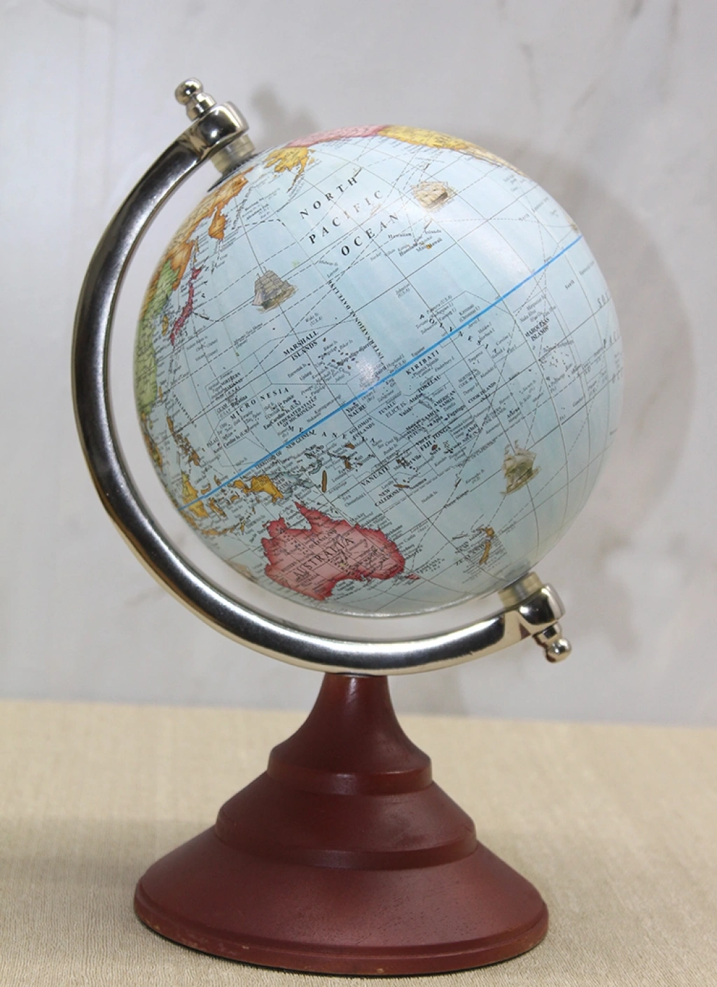 Dekoratif Masaüstü Dünya Küre - Model 16, açık mavi okyanus zeminli atlas tasarımı ve klasik koyu ahşap görünümlü kaidesi ile zamansız bir dekoratif şıklık sunar. 26x17 cm ölçüsü sayesinde orta boy kompakt bir form sunarak masa üzerinde dengeli ve estetik bir görünüm oluşturur. Pastel tonlu kıta detayları, ürüne daha yumuşak ve ferah bir karakter kazandırırken metal meridyen halkası klasik atlas görünümünü tamamlar. masaüstü dekoratif dünya küre arayan kullanıcılar için hem şık hem de ölçü açısından ideal bir alternatiftir. Çalışma masası, kitaplık, ofis rafı ya da salon konsolu üzerinde rahatlıkla konumlandırılabilir. atlas tasarımlı dünya küresi, bulunduğu ortama entelektüel bir hava katar ve dekorasyonunuzu tamamlayan zarif bir odak noktası oluşturur. Dengeli stand yapısı sayesinde sağlam durur ve uzun süreli kullanım için uygundur. Ürün Teknik Özellikleri ÖzellikAçıklama Ürün AdıDekoratif Masaüstü Dünya Küre - Model 16 Boyut26 x 17 cm Kullanım TürüMasaüstü TasarımAçık Mavi Atlas Kullanım AlanıEv, Ofis, Çalışma Alanı Paket İçeriği1 Adet Dekoratif Masaüstü Dünya Küre - Model 16