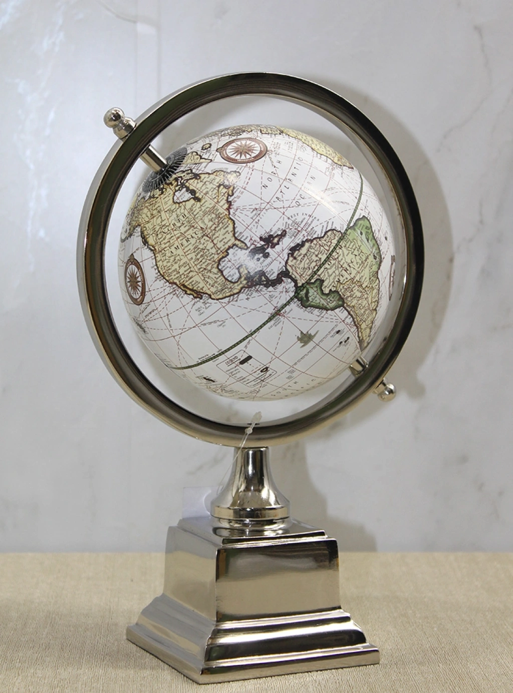 Dekoratif Masaüstü Dünya Küre - Model 20, açık krem tonlu atlas yüzeyi ve parlak metal çerçeve detayları ile klasik dünya küresi tasarımını daha rafine bir çizgide sunar. 26x19 cm ölçüsü sayesinde orta boy kompakt yapıya sahip olup masa üzerinde dengeli ve zarif bir görünüm oluşturur. Yumuşak bej zemin üzerinde işlenen kıta detayları, nostaljik atlas estetiğini yansıtırken metal meridyen halkası ve parlak blok kaide tasarımı ürüne modern bir dokunuş kazandırır. Klasik masaüstü dünya küre arayan kullanıcılar için hem dekoratif hem de zamansız bir alternatif sunan bu model, ofis masası, çalışma odası, kitaplık veya salon konsolu üzerinde şık bir tamamlayıcı olarak konumlandırılabilir. dekoratif atlas dünya küresi, bulunduğu ortama entelektüel bir atmosfer katarken düzenli ve prestijli bir görünüm oluşturur. Sağlam stand yapısı sayesinde stabil durur ve uzun süreli dekoratif kullanım için uygundur. Ürün Teknik Özellikleri ÖzellikAçıklama Ürün AdıDekoratif Masaüstü Dünya Küre - Model 20 Boyut26 x 19 cm Kullanım TürüMasaüstü TasarımAçık Krem Klasik Atlas Kullanım AlanıEv, Ofis, Çalışma Alanı Paket İçeriği1 Adet Dekoratif Masaüstü Dünya Küre - Model 20