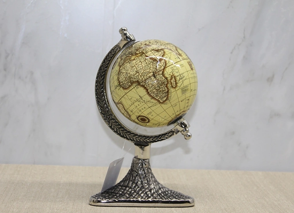 Dekoratif Masaüstü Dünya Küre - Model 6, klasik sarı tonlu harita tasarımı ve detaylı metal görünümlü ayak yapısıyla bulunduğu ortama zarif ve nostaljik bir hava kazandırır. 24x16 cm ölçüsü sayesinde daha kompakt bir form sunarak dar alanlarda dahi rahatlıkla konumlandırılabilir. Özellikle kitaplık rafları, çalışma masası köşeleri ve ofis sehpası üzerinde şık bir tamamlayıcı olarak kullanılabilir. Antik atlas stilini andıran yüzey tasarımı, dekorasyonda entelektüel bir dokunuş arayanlar için ideal bir seçimdir. masaüstü dünya küre olarak hem dekoratif hem de koleksiyon niteliğinde değerlendirilebilen bu model, klasik detayları seven kullanıcılar için öne çıkar. Gövde kısmındaki sıcak tonlu harita rengi ile altındaki desenli ayak formu uyumlu bir bütünlük oluşturur. Dengeli stand yapısı sayesinde sağlam bir duruş sergileyen dekoratif dünya küresi, ev ve ofis dekorasyonuna karakter katan özel bir aksesuardır. Ürün Teknik Özellikleri Özellik Açıklama Ürün Adı Dekoratif Masaüstü Dünya Küre - Model 6 Boyut 24 x 16 cm Kullanım Türü Masaüstü Tasarım Klasik Sarı Tonlu Atlas Kullanım Alanı Ev, Ofis, Kitaplık Paket İçeriği1 Adet Dekoratif Masaüstü Dünya Küre - Model 6