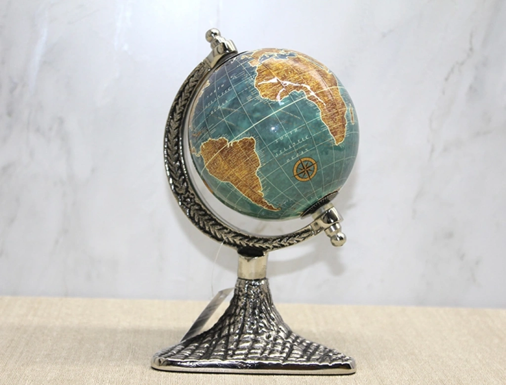 Dekoratif Masaüstü Dünya Küre - Model 9, mavi okyanus tonları ve sıcak sarı-kahverengi kıta detaylarıyla klasik atlas görünümünü daha canlı bir renk paletiyle sunar. 24x16 cm ölçüsü sayesinde kompakt yapıda olup masa üstünde dengeli ve estetik bir duruş sergiler. Harita yüzeyindeki renk geçişleri, ürüne daha dinamik ve modern bir görünüm kazandırırken alt kısmındaki detaylı metal görünümlü ayak yapısı tasarımı tamamlayan zarif bir unsur olarak öne çıkar. renkli atlas dünya küre arayan kullanıcılar için ideal olan bu model, çalışma masası, kitaplık, ofis rafı ya da dekoratif konsol üzerinde dikkat çekici bir aksesuar olarak kullanılabilir. Hem ev hem ofis dekorasyonunda entelektüel bir atmosfer oluşturmak isteyenler için tasarlanan masaüstü dekoratif dünya küre, küçük boyutuna rağmen bulunduğu ortamda güçlü bir görsel etki yaratır. Dengeli stand sistemi sayesinde sabit durur ve dekorasyon bütünlüğünü bozmadan şık bir tamamlayıcı görev üstlenir. Ürün Teknik Özellikleri Özellik Açıklama Ürün Adı Dekoratif Masaüstü Dünya Küre - Model 9 Boyut 24 x 16 cm Kullanım Türü Masaüstü Tasarım Mavi Okyanus Atlas Kullanım Alanı Ev, Ofis, Kitaplık Paket İçeriği1 Adet Dekoratif Masaüstü Dünya Küre - Model 9