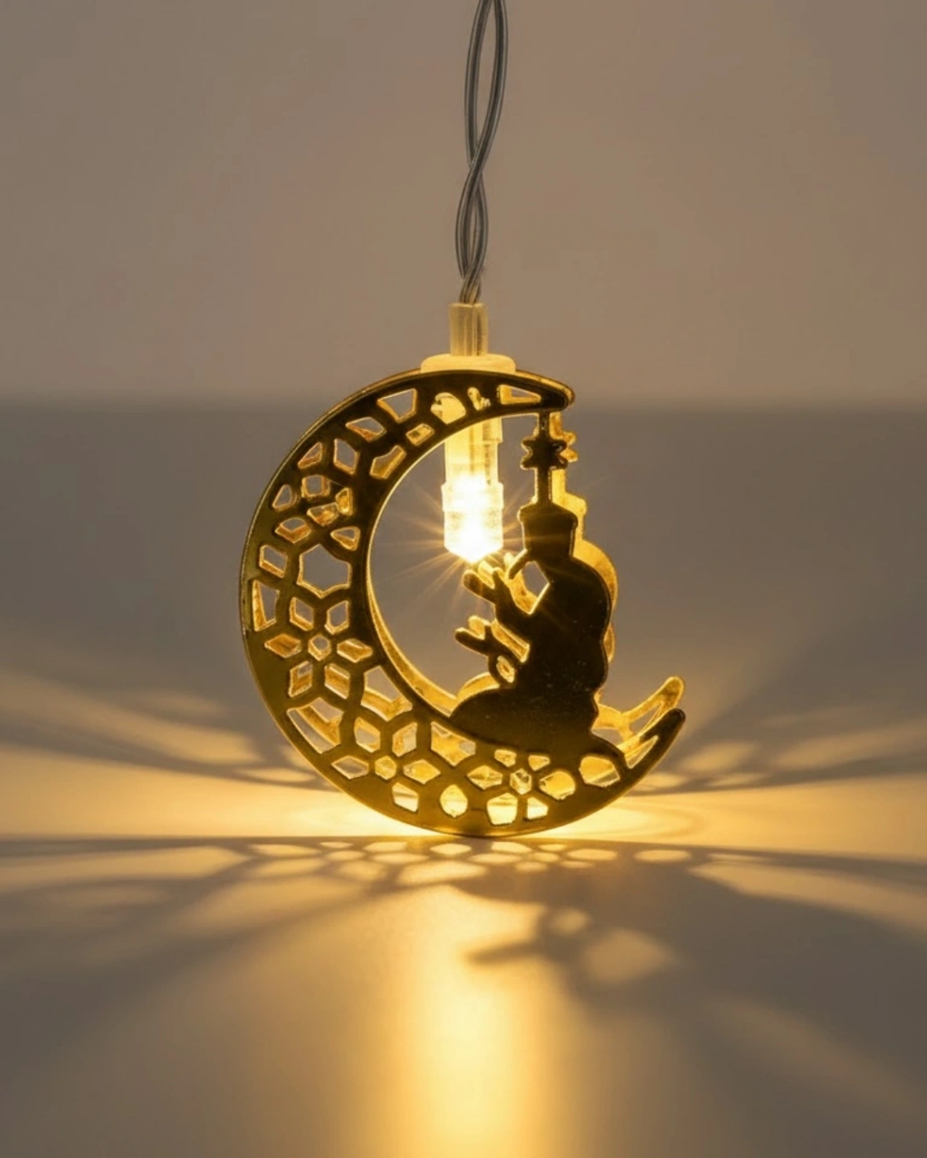 Secde eden adam silüetli ay tasarımlı Ramazan LED ışığı, geleneksel Ramazan ruhunu modern bir dekorasyon anlayışıyla birleştirir. Metal kesim ay figürü, ışıkla birlikte estetik gölgeler oluşturarak bulunduğu ortamın havasını değiştirir.Günışığı sarı LED ışık rengi, sıcak ve huzurlu bir atmosfer sunar. İftar masası, sehpa, halı üstü veya pencere önü dekorasyonlarında rahatlıkla kullanılabilir.Pilli sistemi sayesinde kablosuz kullanım avantajı sunar. Pratik ve fonksiyonel yapısı ile evin her alanında değerlendirilebilir.Ramazan süsleri ve manevi dekorasyon ürünleri arayanlar için şık ve anlamlı bir alternatiftir.