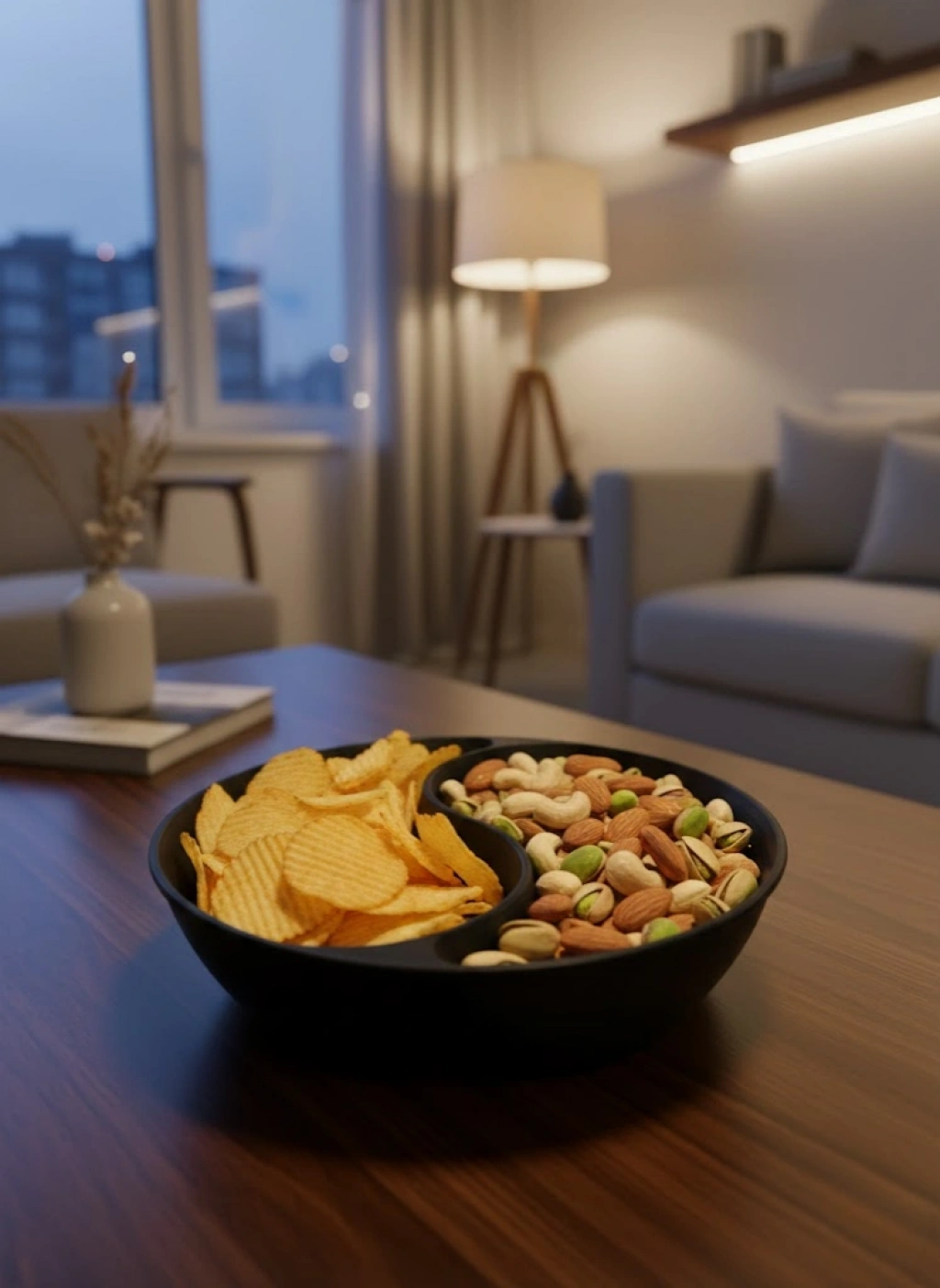 Siyah çerezlik kase seti, sade formu ve zamansız rengiyle sunumlarınıza şıklık katmak için tasarlanmıştır. 3x12 cm ölçüsü, çerez ve atıştırmalıklar için yeterli alan sunarken masa üzerinde fazla yer kaplamaz. 4’lü set yapısı sayesinde farklı ikramları aynı anda sunma imkânı sağlar.Bölmeli yapısı, kuruyemiş, kraker veya küçük atıştırmalıkların düzenli şekilde sunulmasını sağlar. Siyah rengi, modern ve minimal dekorasyon stilleriyle uyumlu bir görünüm sunar. Özellikle salon, raf ve masa üstü kullanımlarında dekoratif bir tamamlayıcı olarak öne çıkar.Günlük kullanımın yanı sıra misafir sofraları için de şık bir alternatiftir. Hem düzenli hem de estetik bir sunum arayanlar için ideal bir üründür.