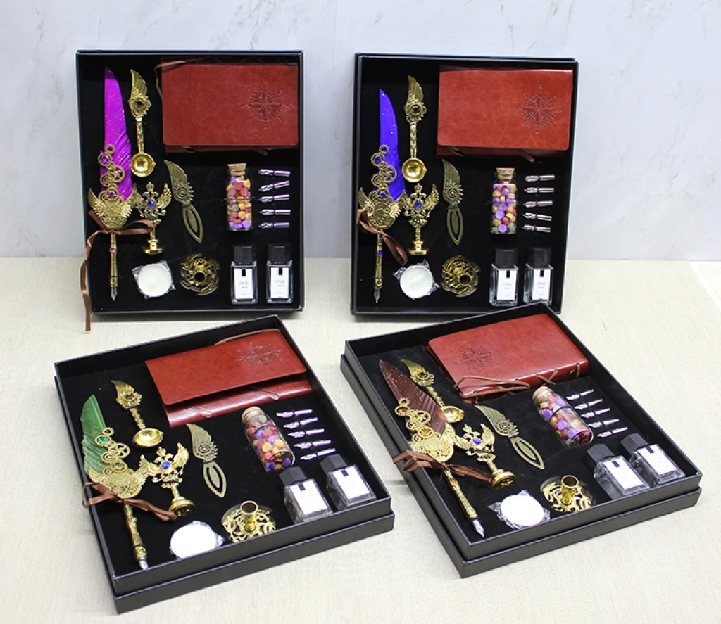 Deri Defterli Divit Hokka ve Mühür Seti Model 2, nostaljik yazım deneyimini zengin bir içerikle birleştiren özel bir kaligrafi ve mühürleme setidir. 30x25 cm boyutundaki şık hediye kutusu içerisinde yer alan deri kapaklı defter, klasik divit kalem, farklı uç alternatifleri, hokka mürekkebi, balmumu ve mühür aparatı; hem estetik hem de fonksiyonel kullanım için özenle hazırlanmıştır. Deri defter, özel yazılar, günlük notlar ve hat sanatı çalışmaları için ideal bir yazım yüzeyi sunarken divit kalem ve hokka mürekkebi nostaljik bir yazı deneyimi sağlar. Mühür ve balmumu detayları ise özel mektupların, davetiyelerin ve belgelerin kişisel mühürleme ile tamamlanmasına imkân tanır. Renk seçimi yapılamaz; görseldeki seçeneklerden biri karışık olarak gönderilir. Hem koleksiyon değeri taşıyan hem de etkileyici bir hediye niteliği sunan şık bir settir.Paket İçeriği1 adet Deri Defterli Divit Hokka Ve Mühür Seti Model 2