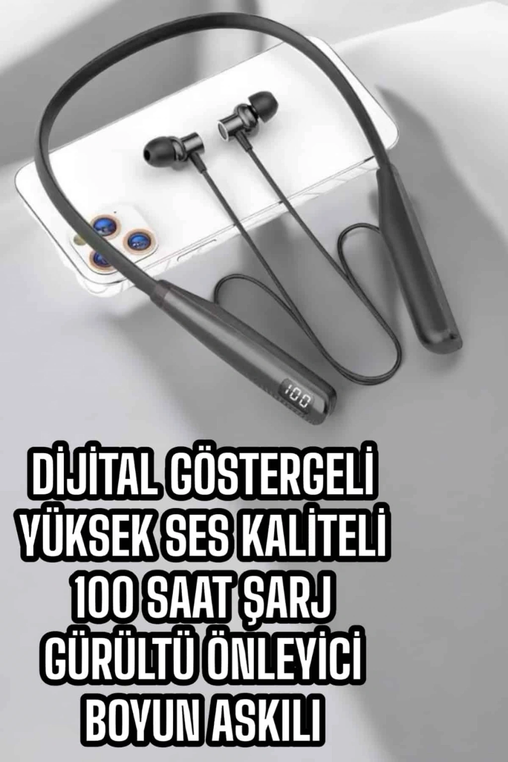 VipMarketim Dijital Göstergeli Kulak İçi Kablosuz Bluetooth Kulaklık Boyun Bantlı