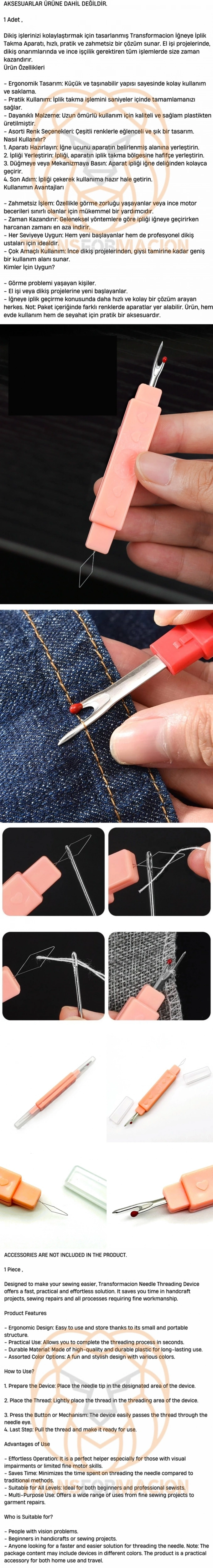 - İğneye iplik geçirme konusunda daha hızlı ve kolay bir çözüm arayan herkes. Not: Paket içeriğinde farklı renklerde aparatlar yer alabilir. Ürün, hem evde kullanım hem de seyahat için pratik bir aksesuardır.
