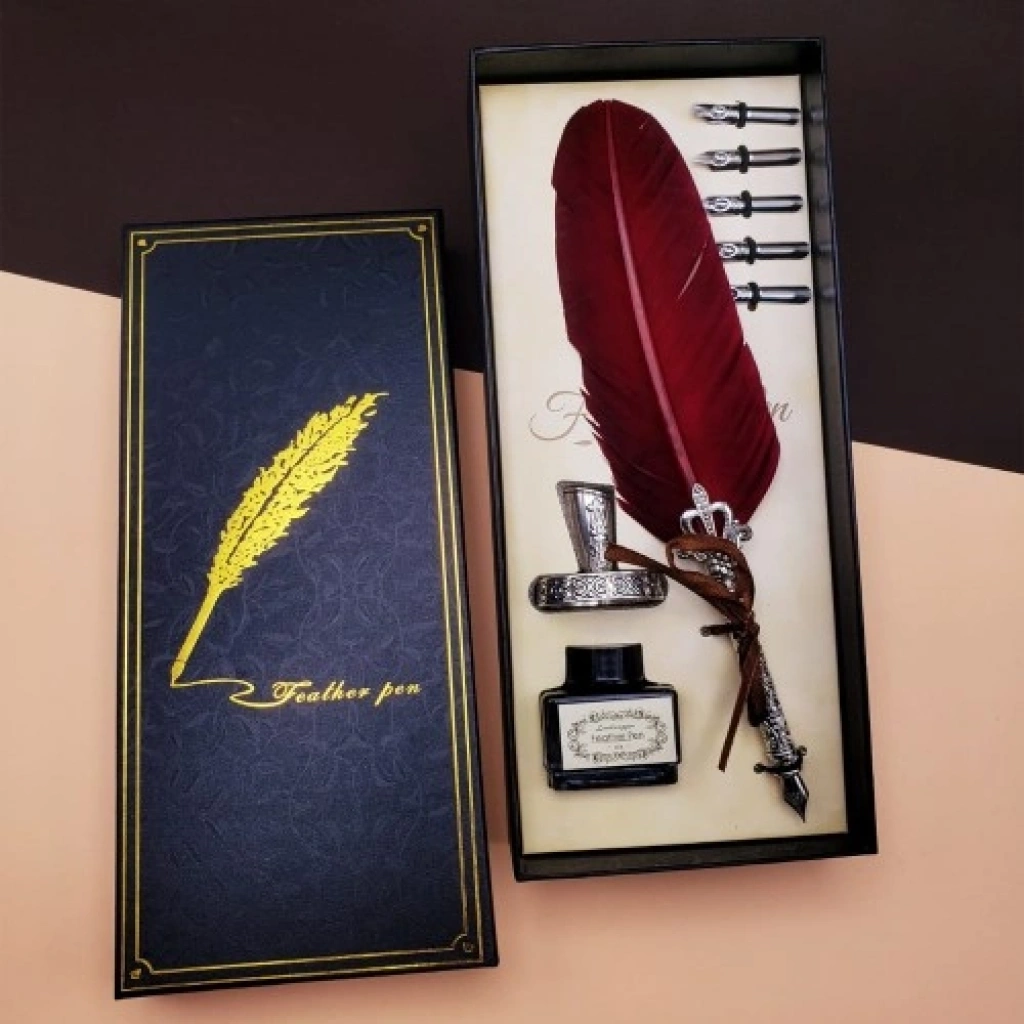Divit kalem metal uçlu ve tüylü tasarıma sahiptir Set yanında 5 farklı yazı ucu bulunmaktadır Özel divit mürekkebi set içerisinde yer alır Masaüstü kalem tutucu aparatı mevcuttur Özel tasarımlı hediyelik kutusunda gönderilir Şık görünümü ile hem dekor hem de kullanım amaçlı tercih edilebilir Paket İçeriği 1 adet tüylü divit kalem 1 adet masaüstü kalemlik 1 adet mürekkep şişesi 5 adet farklı divit uç başlığı
