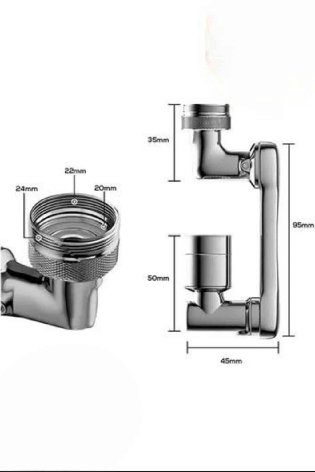 1080° dönebilen musluk başlığı, lavabonuzda çok yönlü kullanım avantajı sağlayan fonksiyonel bir tasarıma sahiptir. Standart musluklara göre çok daha geniş hareket kabiliyeti sunan bu ürün, suyu tam istediğiniz noktaya yönlendirerek günlük temizlik işlerini ve kişisel bakım rutininizi kolaylaştırır.Tam 1080 derece dönebilmesi, musluk başlığını hem yukarı hem aşağı, hem sağ hem sol tarafa yönlendirebilmenize imkan tanır. Böylece yüzünüzü, saçlarınızı, ellerinizi yıkarken veya gargara yaparken suyu daha kontrollü bir şekilde kullanabilirsiniz. Özellikle sabit musluklardan kaynaklanan su sıçraması problemi bu ürünle büyük ölçüde ortadan kalkar.Musluk başlığı, iki farklı su akış modu sunar: püskürtme modu ve köpük akış modu. Köpük akış modu, daha yumuşak bir su deneyimi sunarak hassas kullanım gerektiren yüz yıkama ve kişisel temizlik işlerinde ideal bir çözümdür. Püskürtme modu ise geniş açılı güçlü bir akış sağlayarak lavabonun her noktasına erişir ve temizlik işlemlerini çok daha hızlı hale getirir.Üründeki dört katmanlı filtre sistemi suyun içerisindeki tortu ve kirleri tutmaya yardımcı olur. Aynı zamanda suyun daha düzenli akmasını sağlar. Sızdırmazlık sağlayan çift conta yapısı, musluk başlığının güvenli ve damlamadan kullanımını destekler.Montaj süreci oldukça basit olup ekstra bir uzmana ihtiyaç duyulmaz. 20–24 mm arası dış dişli musluklara doğrudan takılabilen yapısı ile çoğu ev musluğuna uyum sağlar. Paket içerisinde yer alan alyan anahtarı ve contalar, kurulumu daha sağlam ve pratik hale getirir.1080° hareket özelliği sayesinde lavaboda suyun yönünü ayarlamak çok kolaydır. Bu özellik, hem temizlik işlerinde zaman kazandırır hem de suyun gereksiz yere dağılmasını engelleyerek su tasarrufu sağlar.Mutfağınızda, banyonuzda veya lavabo alanında pratiklik ve konfor arıyorsanız, bu döner musluk başlığı yaşam kalitenizi yükseltecek fonksiyonel bir çözümdür.