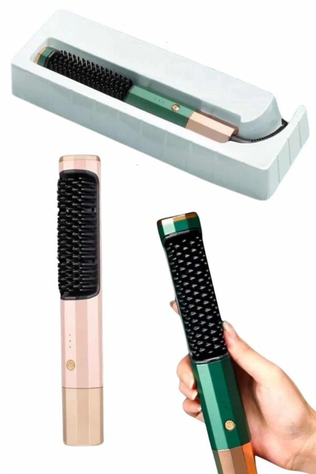 VipMarketim Düzleştirici Fırça Saç Düzleştirici Arada Fön Tarak Taşınabilir