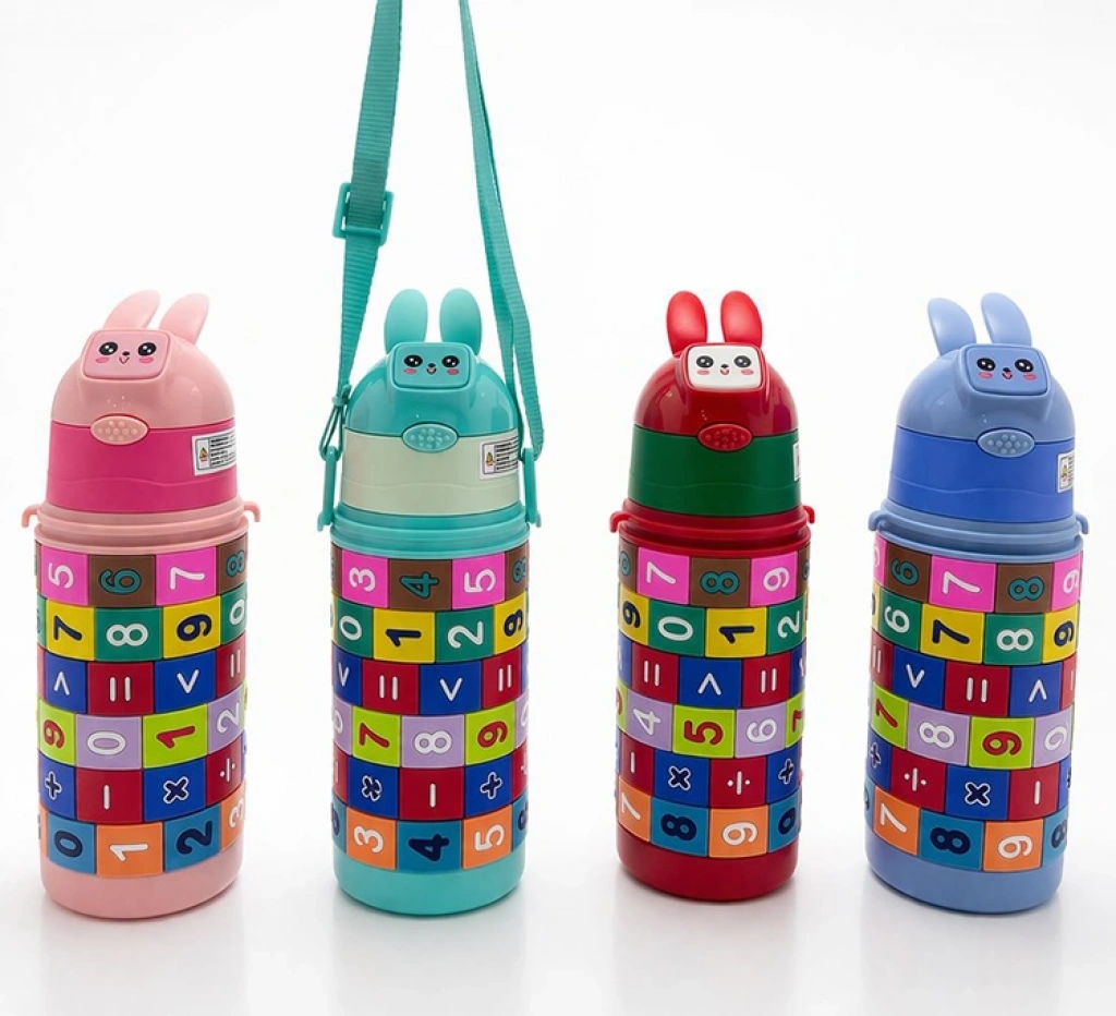 Çocuklar için su içmek artık çok daha eğlenceli ve öğretici! Eğitici Matematik Oyunlu Çocuk Termosu, gövdesinde yer alan hareketli sayı ve işlem halkaları sayesinde miniklerin su mola sürelerini birer zeka egzersizine dönüştürür. 24x7 cm boyutlarındaki bu fonksiyonel suluk, yüksek kaliteli paslanmaz çelik iç haznesi ile içeceklerin ısısını uzun süre muhafaza eder. Hijyenik silikon pipetli kapağı kolayca açılır ve sızdırmaz yapısıyla okulda, parkta veya seyahatlerde güvenle kullanılabilir. Ayarlanabilir taşıma askısı sayesinde çocuklar termoslarını omuzlarında rahatça taşıyabilirler. Hem bir matara hem de eğlenceli bir oyuncak görevi gören bu tasarım, çocukların sayısal becerilerini geliştirirken su içme alışkanlığı kazanmalarına yardımcı olur. Ürün Teknik Özellikleri ÖzellikAçıklama Boyutlar24 cm (Yükseklik) x 7 cm (Çap) MalzemePaslanmaz Çelik İç Gövde & Dayanıklı Dış Katman Eğitici DetayGövde Üzeri Döner Matematik Oyun Halkaları İçim TipiYumuşak Silikon Pipetli Başlık TaşımaAyarlanabilir ve Çıkarılabilir Boyun Askısı Renk SeçeneğiPembe, Turkuaz, Kırmızı, Mavi (Karışık gönderilir) Kullanım AlanıOkul, Kreş, Piknik ve Günlük Aktiviteler Paket İçeriği1 Adet Eğitici Matematik Oyunlu Paslanmaz Çelik Çocuk Termosu