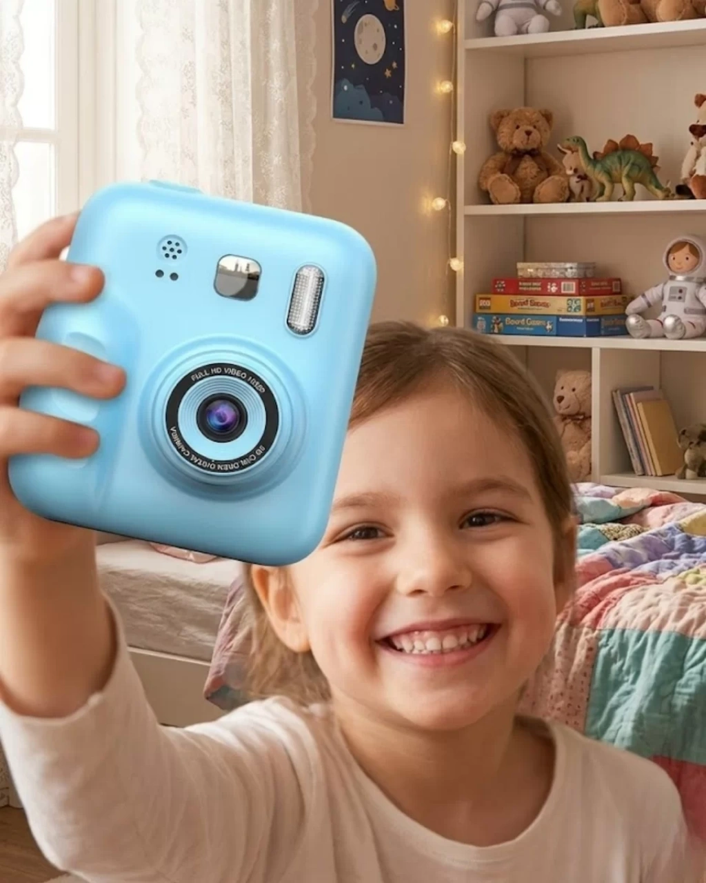 Bu anında baskı özellikli çocuk kamerası, teknolojiyi eğlence ile birleştiren yenilikçi bir üründür. Çocuklar fotoğraf çekebilir, video kaydedebilir ve bu anları anında basarak saklayabilir.Kullanımı oldukça kolaydır ve çocuklar kısa sürede tüm özellikleri öğrenebilir. Ergonomik yapısı sayesinde rahat kullanım sağlar. Ürünle birlikte gelen 4 rulo kağıt ve 5 renkli kalem, çocukların yaratıcılığını destekleyen önemli bir avantaj sunar. Fotoğraflar boyanabilir ve kişiselleştirilebilir.Dayanıklı yapısı ile uzun süre kullanım sağlar. Bu da ebeveynler için güvenli bir tercih oluşturur.