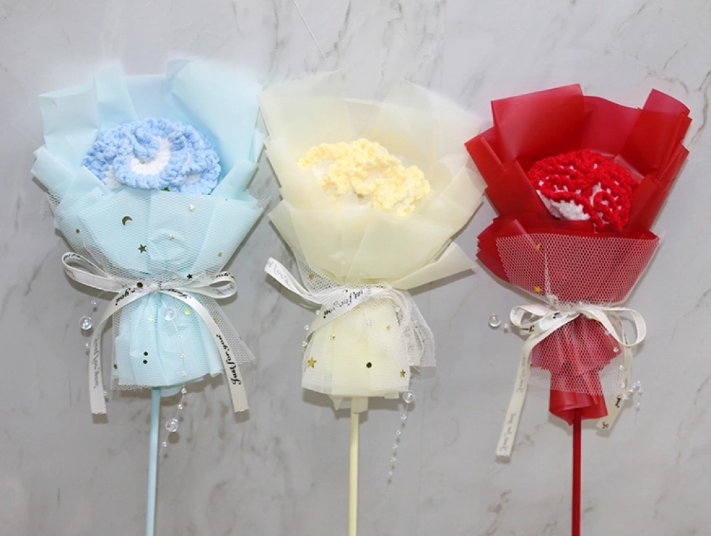 El Örgüsü Tekli Çiçek Buketi, zarif tasarımı ve el emeği dokusuyla dekoratif amaçlı kullanılabilen şık bir aksesuardır. 37 cm boyutundaki kompakt yapısı sayesinde masa üstü düzenlemelerinde, hediye sunumlarında, özel gün kutlamalarında ve fotoğraf çekimi konseptlerinde estetik bir tamamlayıcı olarak tercih edilir. Örgü çiçeğin yumuşak dokusu ve tül kaplamalı dış formu ürüne romantik ve sevimli bir görünüm kazandırırken, sap kısmındaki kurdele detayı hediye sunumu için ideal bir şıklık sağlar. El işçiliğiyle üretildiği için her bir buket kendine özgü bir karakter taşır. Renk seçimi yapılamaz; görseldeki renklerden biri karışık olarak gönderilir. Hem el yapımı ürün sevenler hem de dekoratif çiçek arayanlar için ideal bir tercihtir.Paket İçeriği1 adet El Örgüsü Tekli Çiçek Buketi