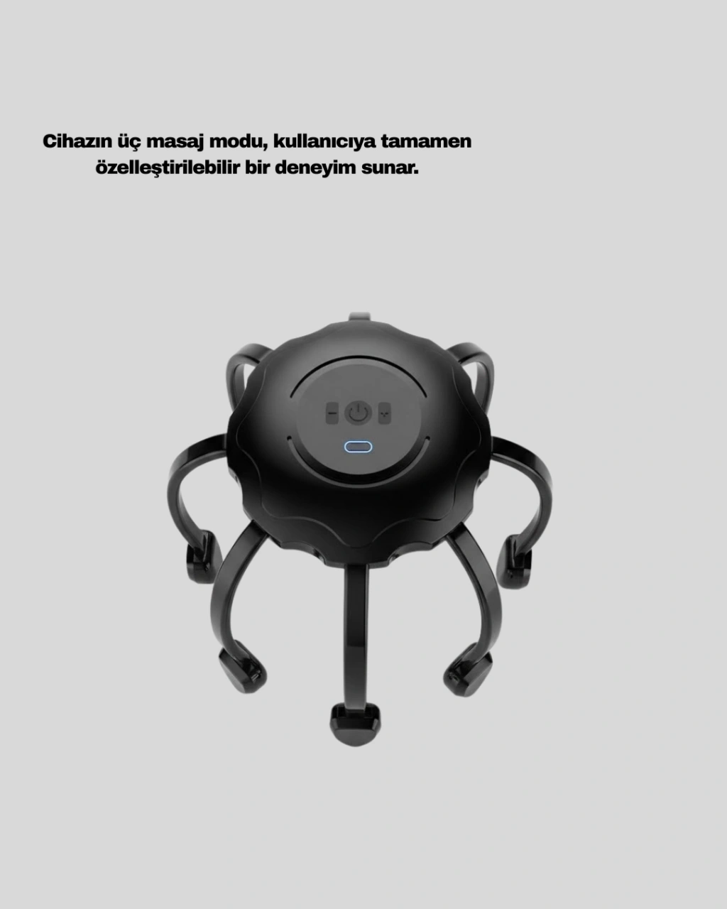 Elektrikli saç derisi masaj aleti, yoğun tempolu yaşamın getirdiği stres ve gerginliği azaltmak isteyen kullanıcılar için özel olarak tasarlanmıştır. Çok noktalı yapıya sahip 8 kollu masaj sistemi sayesinde saç derisinin tamamını kapsayan dengeli bir masaj deneyimi sunar. Titreşimli başlıklar, saç derisine eşit basınç uygulayarak gün boyunca biriken gerginliği azaltmaya yardımcı olur.360 derece kapsama sağlayan esnek masaj kolları, baş çevresini sararak tek noktaya değil tüm saç derisine etki eder. Bu sayede masaj hissi daha homojen ve konforlu hale gelir. Üç farklı masaj modu sayesinde kullanıcılar ihtiyacına göre masaj seviyesini kolayca seçebilir. Hafif mod rahatlatıcı bir etki sunarken, orta mod günlük stresin azalmasına yardımcı olur. Yoğun mod ise daha güçlü titreşimlerle derin bir rahatlama hissi sağlar.USB şarjlı tasarımı sayesinde kablo karmaşasına gerek kalmadan pratik kullanım imkânı sunar. Sessiz çalışan motoru sayesinde gece saatlerinde bile çevreyi rahatsız etmeden kullanılabilir. Hafif ve kompakt yapısı sayesinde evde, ofiste veya seyahat sırasında rahatlıkla taşınabilir.Düzenli kullanımda saç derisinde kan dolaşımını destekleyerek daha canlı ve ferah bir his oluşmasına katkı sağlar. Uzun süre bilgisayar başında kalanlar, stresli günlerin ardından rahatlamak isteyenler ve uyku öncesi gevşeme rutini oluşturmak isteyenler için ideal bir yardımcıdır. Elektrikli saç derisi masaj aleti, günlük yaşamın temposuna kısa ama etkili bir mola vermek isteyenler için pratik ve konforlu bir çözümdür.