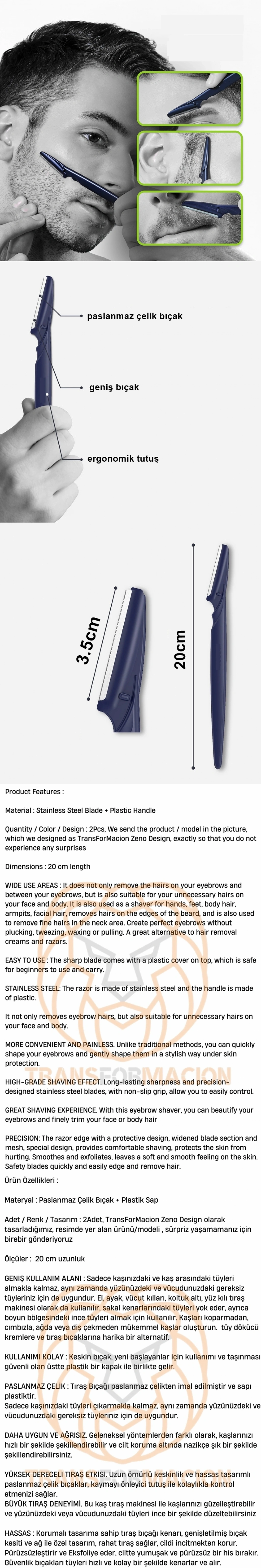 GENİŞ KULLANIM ALANI : Sadece kaşınızdaki ve kaş arasındaki tüyleri almakla kalmaz, aynı zamanda yüzünüzdeki ve vücudunuzdaki gereksiz tüyleriniz için de uygundur. El, ayak, vücut kılları, koltuk altı, yüz kılı tıraş makinesi olarak da kullanılır, sakal kenarlarındaki tüyleri yok eder, ayrıca boyun bölgesindeki ince tüyleri almak için kullanılır. Kaşları koparmadan, cımbızla, ağda veya diş çekmeden mükemmel kaşlar oluşturun. tüy dökücü kremlere ve tıraş bıçaklarına harika bir alternatif.