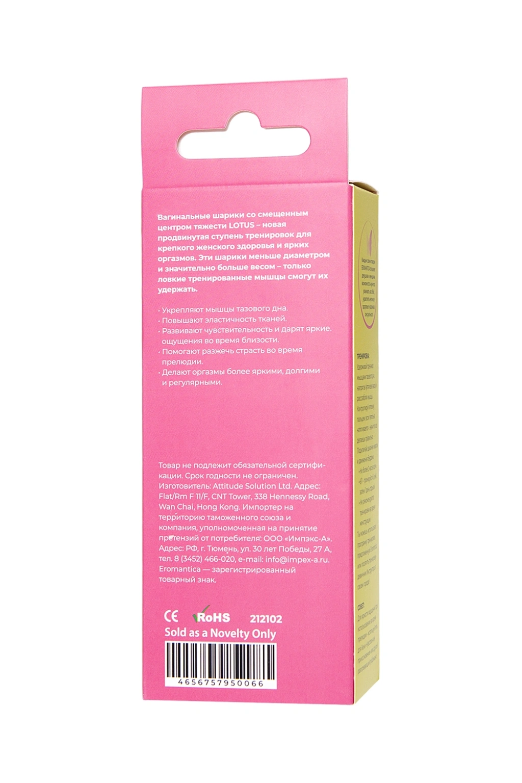 Yer değiştirmiş ağırlık merkezi olan LOTUS vajinal topları, güçlü kadın sağlığı ve canlı orgazmlar için yeni bir ileri eğitim aşamasıdır. Bu toplar çaptan daha küçüktür ve çok daha ağırdır – sadece çevik eğitimli kaslar onları tutabilir. Antrenmana henüz başlamadın mı? O zaman bu topları ön sevişme için kullan! Yerinden edilmiş ağırlık merkezi, herhangi bir hareketle vajinanın duvarlarını etkiler ve bir dereceye kadar heyecan yaratır! Klitoral ön sevişme sırasında topları kullan ve orgazmlarını saymaya başla!