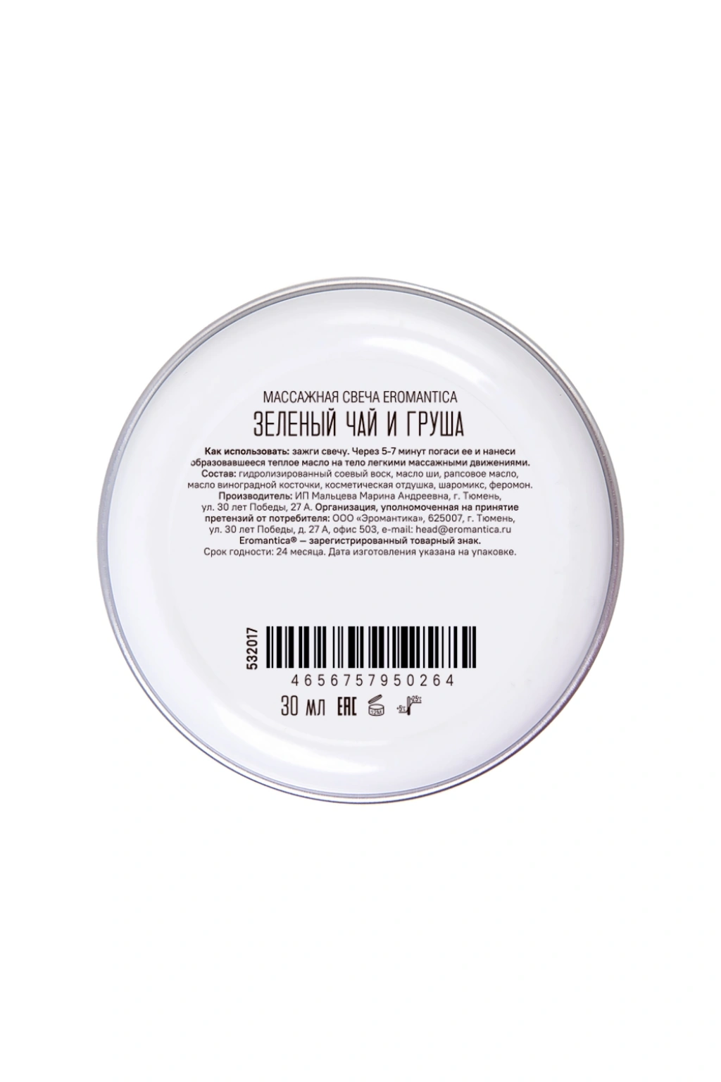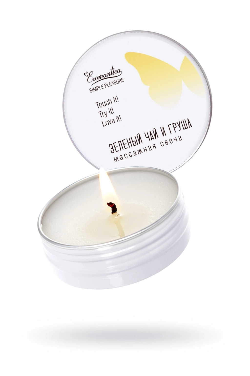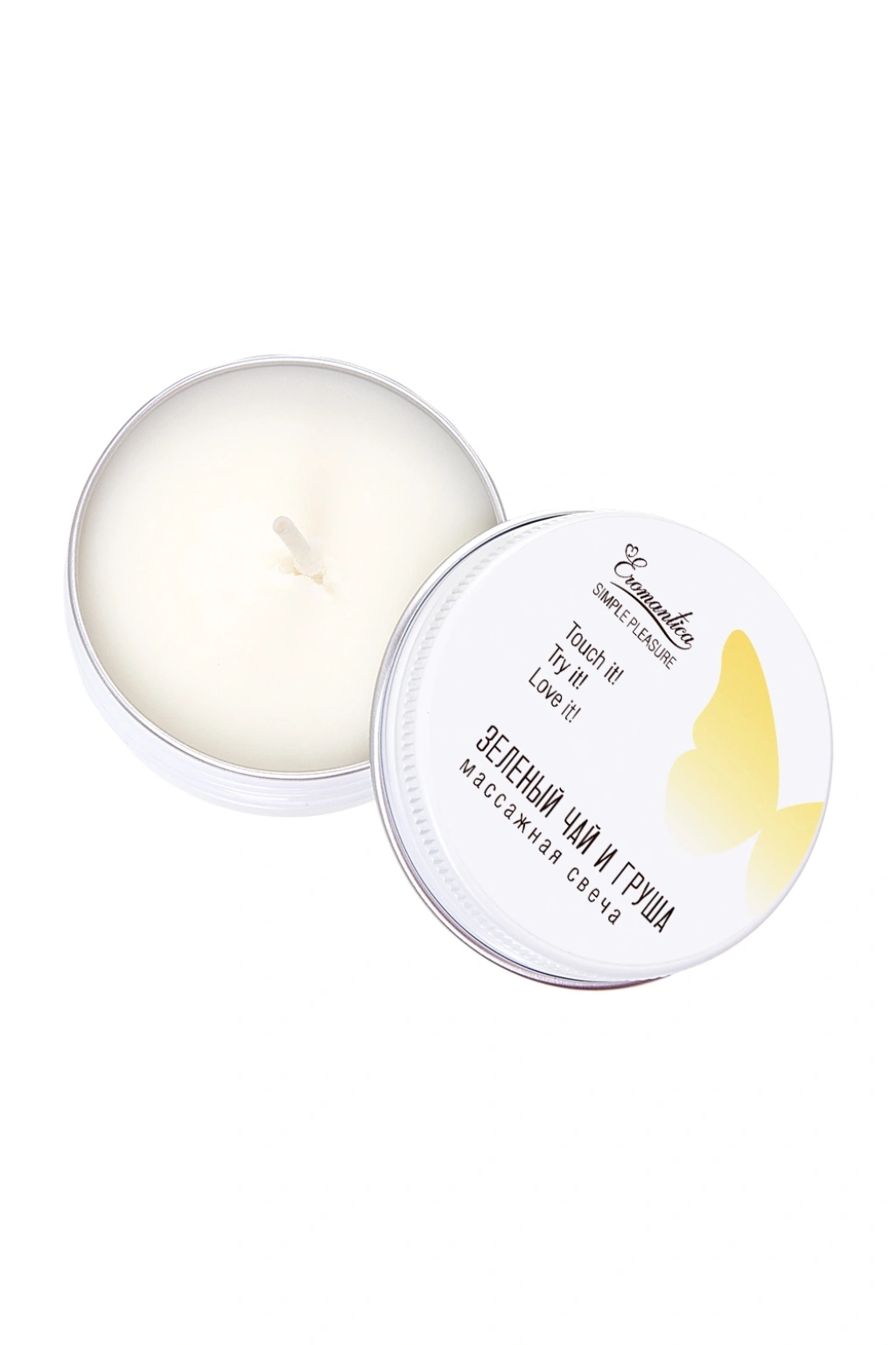 Eromantica Simple Pleasure masaj kozmetik koleksiyonu, uygun bir biçimde doğal masaj yağlarıdır. Onlarla romantik bir atmosfer yaratabilir ve her yerde ve her zaman lüks bakımın tadını çıkarabilirsiniz. Eromantica masaj mumu «Yeşil Çay ve armut" - rahat bir biçimde rahatlayın ve rahatlayın. Nasıl kullanılır: Bir mum yak. 5-7 dakika sonra söndürün ve oluşan yağı hafif masaj hareketleriyle vücuda uygulayın.