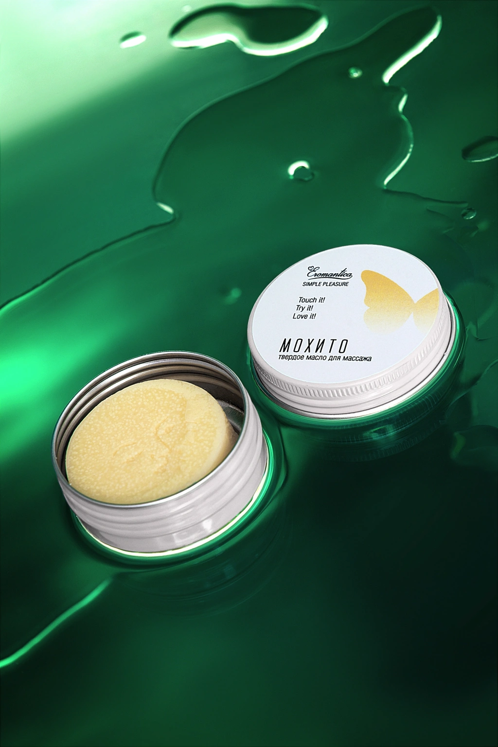 Eromantica Simple Pleasure masaj kozmetik koleksiyonu, uygun bir biçimde doğal masaj yağlarıdır. Onlarla romantik bir atmosfer yaratabilir ve her yerde ve her zaman lüks bakımın tadını çıkarabilirsiniz.Eromantica masajı için katı yağ "Mojito— - rahatlayın ve rahat bir biçimde bakım yapın.Nasıl kullanılır: Vücudunuzdaki döşemeleri yumuşak masaj hareketleriyle geçirin.