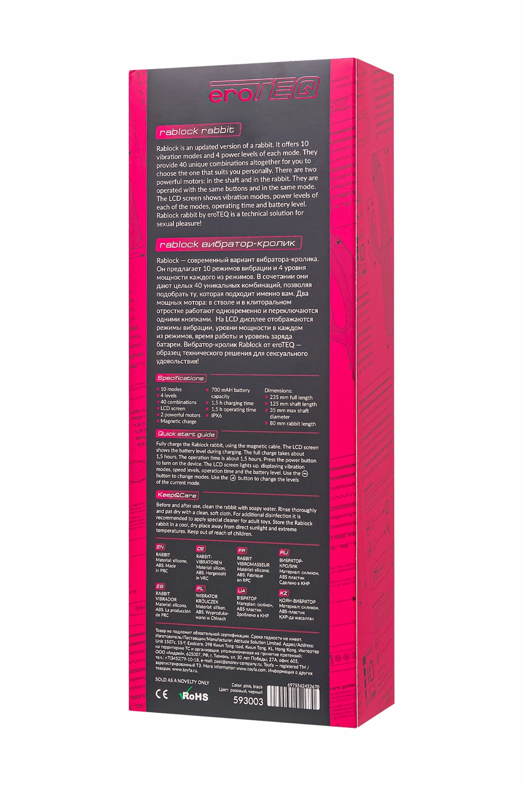 VipMarketim Eroteq Klitoral Uyarımlı G Noktası Vibratörü Rablock, Silikon, Pembe, 23,5 Cm
