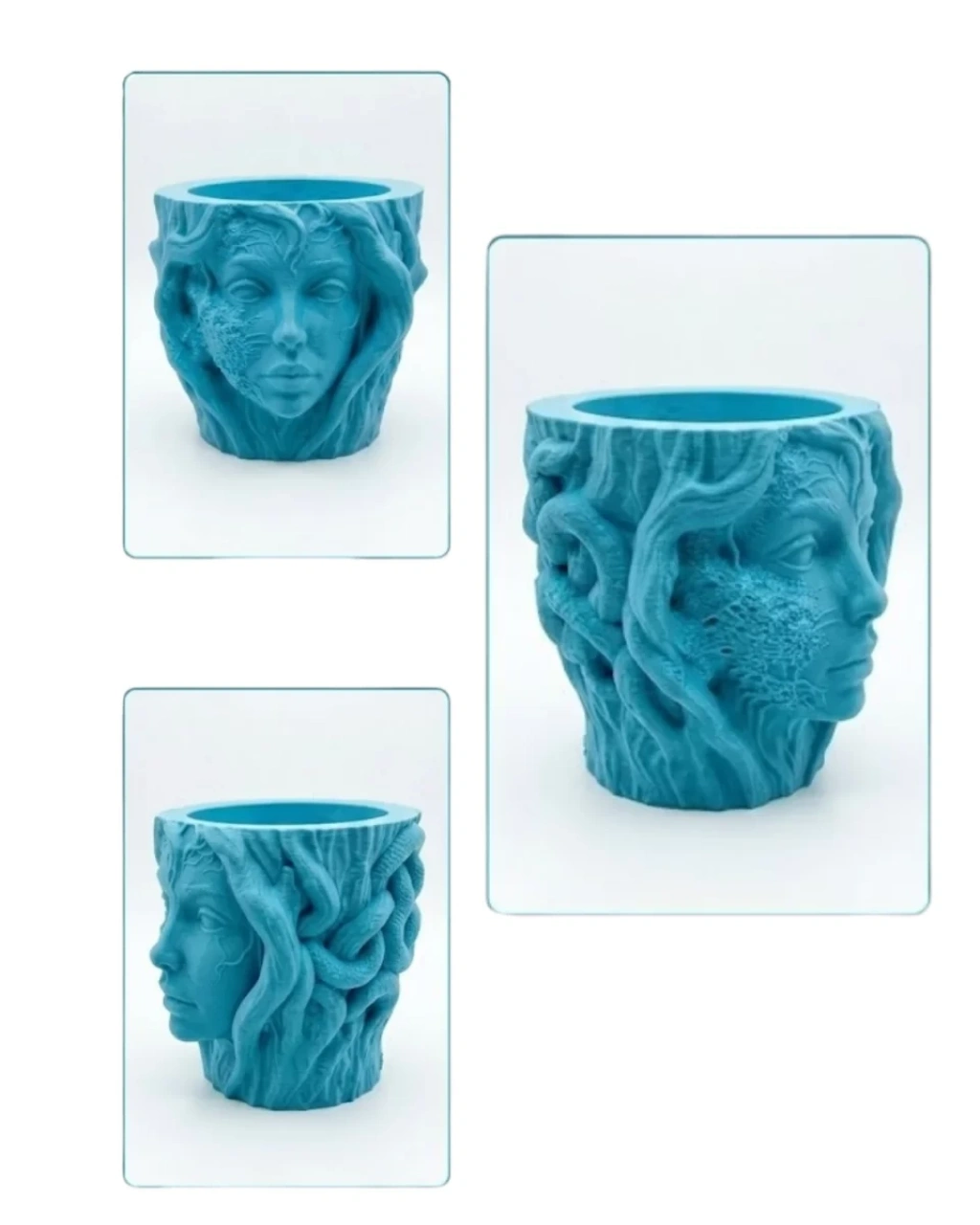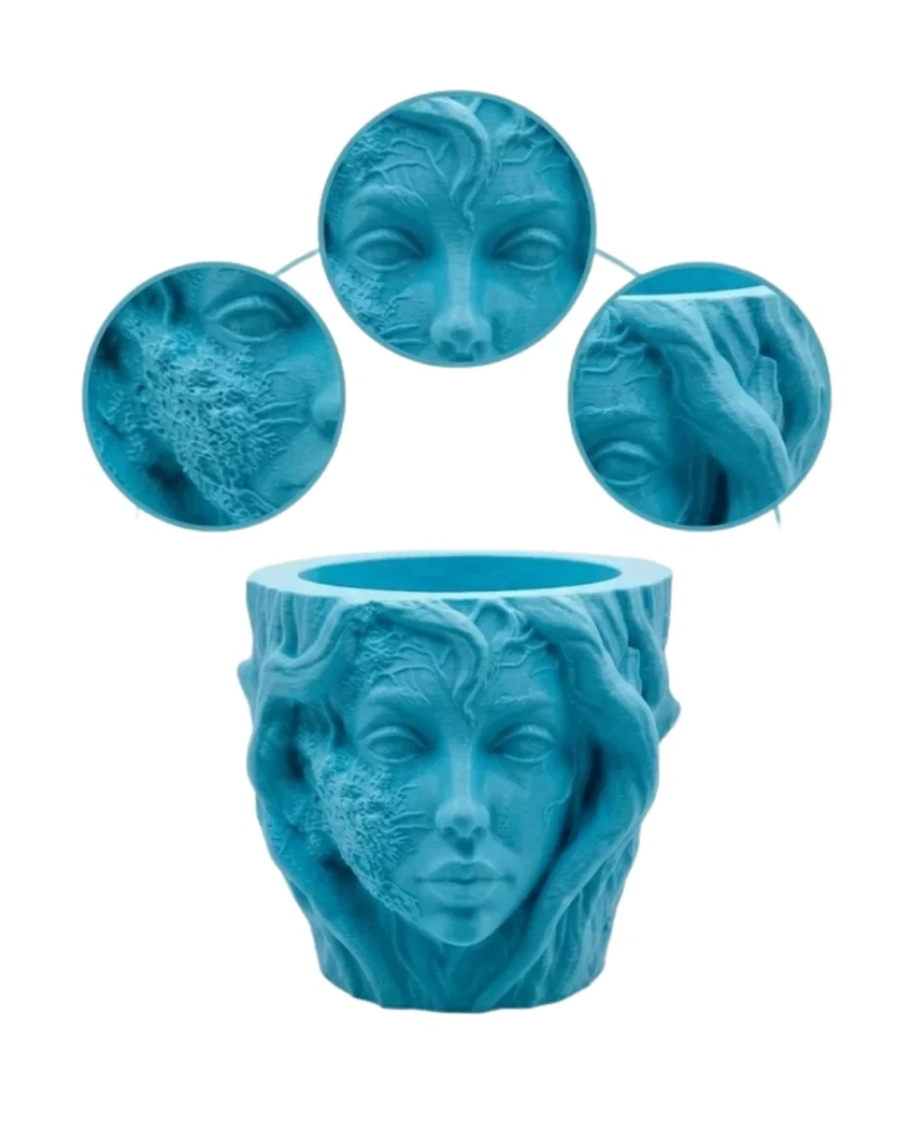 Dekoratif 3D kadın yüzü ağaç tasarımlı vazo, modern dekorasyon anlayışını sanatsal tasarım ile bir araya getiren dikkat çekici bir dekoratif üründür. Kadın yüzü figürü ile doğa temalı ağaç dokusunun birleştiği bu özel tasarım, yaşam alanlarında estetik bir atmosfer oluşturmak isteyenler için ideal bir dekoratif objedir. Heykel formunda tasarlanan bu vazo, bulunduğu ortama sanat galerisi havası katan modern bir dekor aksesuarı olarak öne çıkar.3D baskı teknolojisi kullanılarak üretilen bu dekoratif saksı vazo, detaylı yüz hatları ve özgün yüzey dokusu sayesinde oldukça etkileyici bir görünüm sunar. Kadın yüzünün bir bölümünün ağaç dokusu ile birleşmiş gibi tasarlanması ürüne doğa ve sanat temalı güçlü bir karakter kazandırır. Bu tasarım yalnızca dekoratif bir vazo değil, aynı zamanda sanatsal bir heykel objesi olarak da değerlendirilebilir.Dekoratif 3D kadın yüzü vazo, özellikle küçük bitkiler için oldukça uygun bir kullanım sunar. Sukulent, kaktüs veya küçük çiçekler ile kullanıldığında hem doğal hem de estetik bir görünüm oluşturur. Bunun dışında kalemlik, masa süsü veya raf dekoru olarak da kullanılabilir. Bu çok yönlü kullanım özelliği sayesinde ev ve ofis dekorasyonunda farklı alanlarda rahatlıkla değerlendirilebilir.Salon, çalışma odası, kitaplık, televizyon ünitesi veya sehpa üzerinde kullanıldığında bulunduğu ortama modern ve sanatsal bir dokunuş kazandırır. Minimalist dekorasyon, modern dekorasyon, bohem stil veya sanatsal dekor konseptleri ile uyum sağlayabilecek tasarıma sahiptir.Dekoratif 3D kadın yüzü ağaç tasarımlı vazo aynı zamanda hediye alternatifi olarak da oldukça özel bir üründür. Ev hediyesi, yeni ev hediyesi, doğum günü hediyesi veya dekorasyon meraklılarına verilebilecek anlamlı bir dekoratif objedir.Modern tasarımı, sanatsal formu ve estetik görünümü ile dekoratif 3D kadın yüzü vazo yaşam alanlarında fark yaratan şık bir dekor ürünüdür.