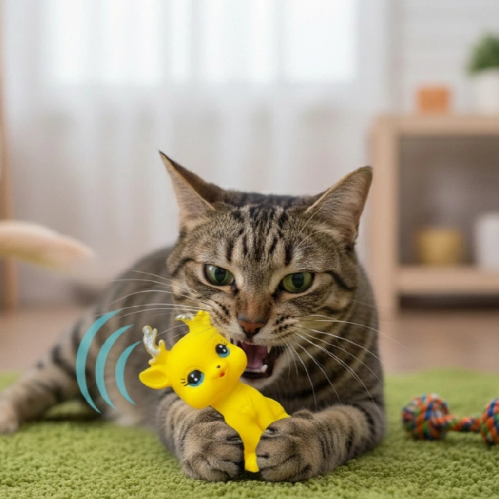 Evcil Hayvan Sesli Geyik Şeklinde Plastik Oyuncak, sevimli geyik tasarımı ve canlı renkleriyle kedilerin ve küçük ırk köpeklerin ilgisini çeken eğlenceli bir oyuncaktır. Sıkıldığında ses çıkaran mekanizması sayesinde evcil hayvanların oyun içgüdüsünü harekete geçirir ve enerjisini atmasına yardımcı olur. Dayanıklı plastik yapısı uzun ömürlü bir kullanım sunarken, hafif ve kolay taşınabilir yapısı ile ev içinde her alanda rahatlıkla kullanılabilir. Oyuncak tekli olarak satılır ve renk seçeneği bulunmadığından görseldeki renklerden biri karışık olarak gönderilir. Temizliği kolaydır ve günlük oyun aktivitelerinde güvenle kullanılabilir. Paket İçeriği1 adet Sesli Geyik Şeklinde Plastik Oyuncak