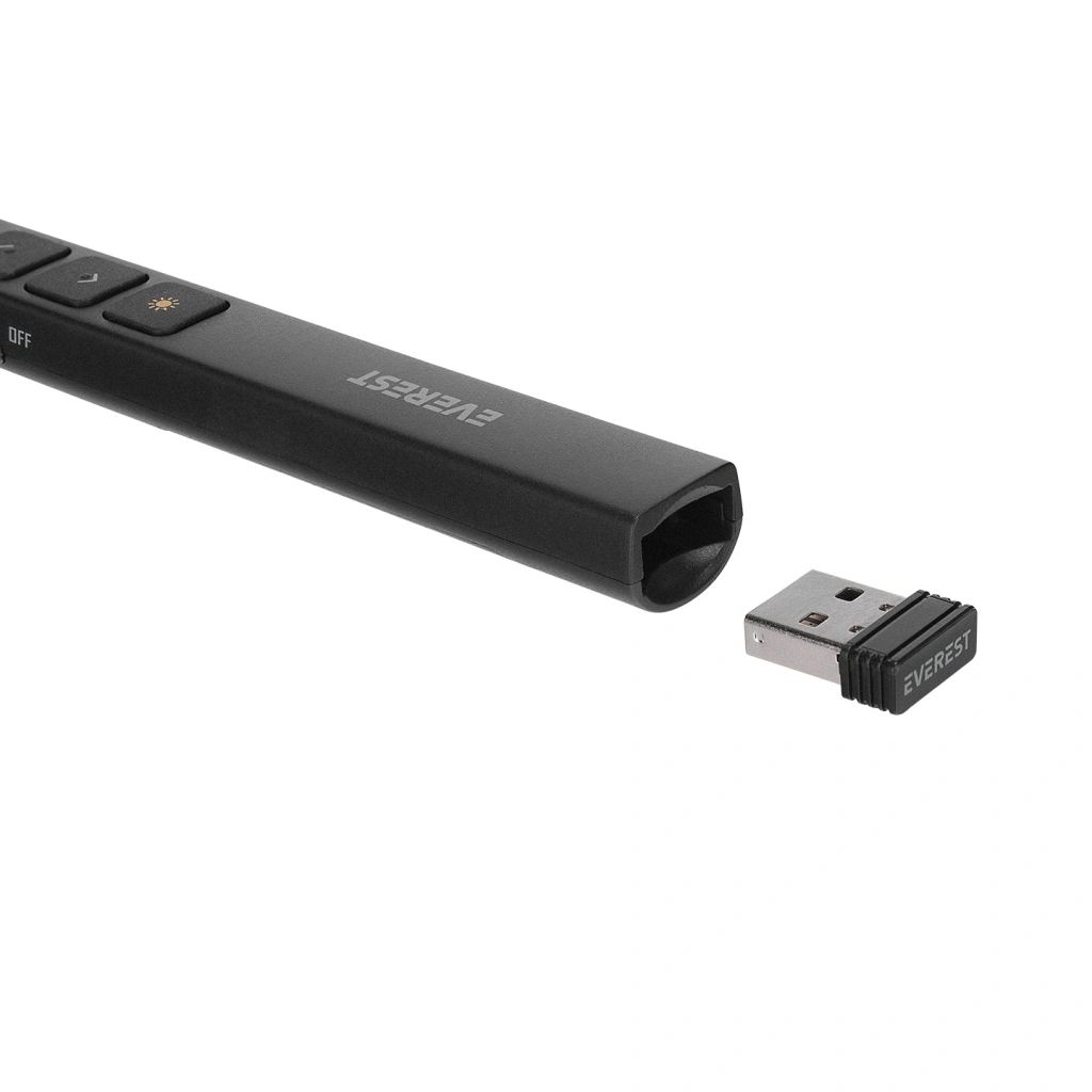 MarkaEverestModelPSN-18AçıklamaKablosuz Profesyonel Sunum CihazıRenkSiyahArayüz2.4 Ghz Wireless DongleTuş Sayısı6Led GöstergesiMaviBatarya1x AAALazer Mesafesi100-200mKablosuz Mesafesi 50-100mÜrün Boyutu136 x 18.5 x 13.5 mmPaket İçeriğiÜrün / Kullanım Klavuzu + GarantiGaranti Süresi24 Ay