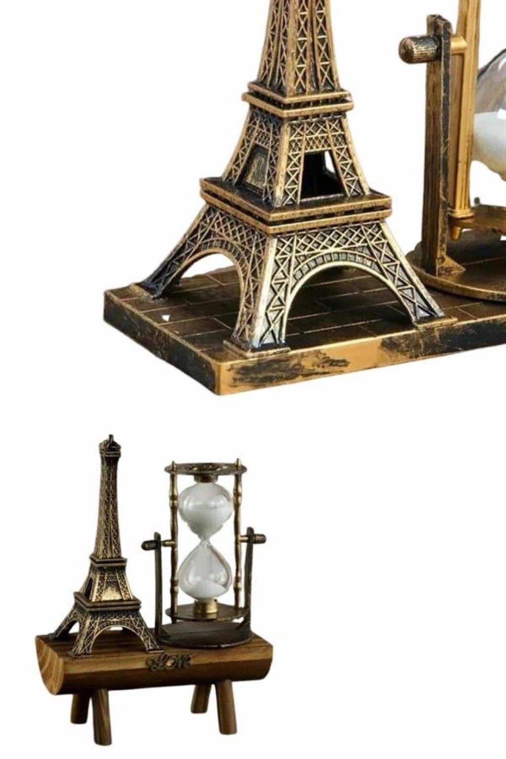 Bu özel tasarımlı kum saati, hem şıklığı hem de işlevselliğiyle masa üstü dekorasyonunuza estetik bir katkı sağlar. Zamanın akışını sade ve zarif bir şekilde gözlemleyebileceğiniz bu kum saati, kaliteli cam haznesi içinde bulunan ince beyaz kristal kum taneleriyle dikkat çeker. Ürünün hemen yanında konumlandırılmış Eyfel Kulesi figürü, Paris’in romantik atmosferini yaşam alanınıza taşır. Ahşap ve plastik malzemenin birleşimiyle üretilmiş olan gövdesi ise ürüne hem doğallık hem de modern bir görünüm kazandırır. 21 cm yüksekliği ve 15 cm uzunluğu ile ideal boyutlara sahip olan kum saati, yaklaşık 30 saniyelik süre ölçümü yapabilir. Hem dekoratif amaçlı kullanabileceğiniz hem de sevdiklerinize anlamlı bir hediye olarak sunabileceğiniz bu ürün, yaşam alanlarınıza zarafet katmak için mükemmel bir tercihtir.
