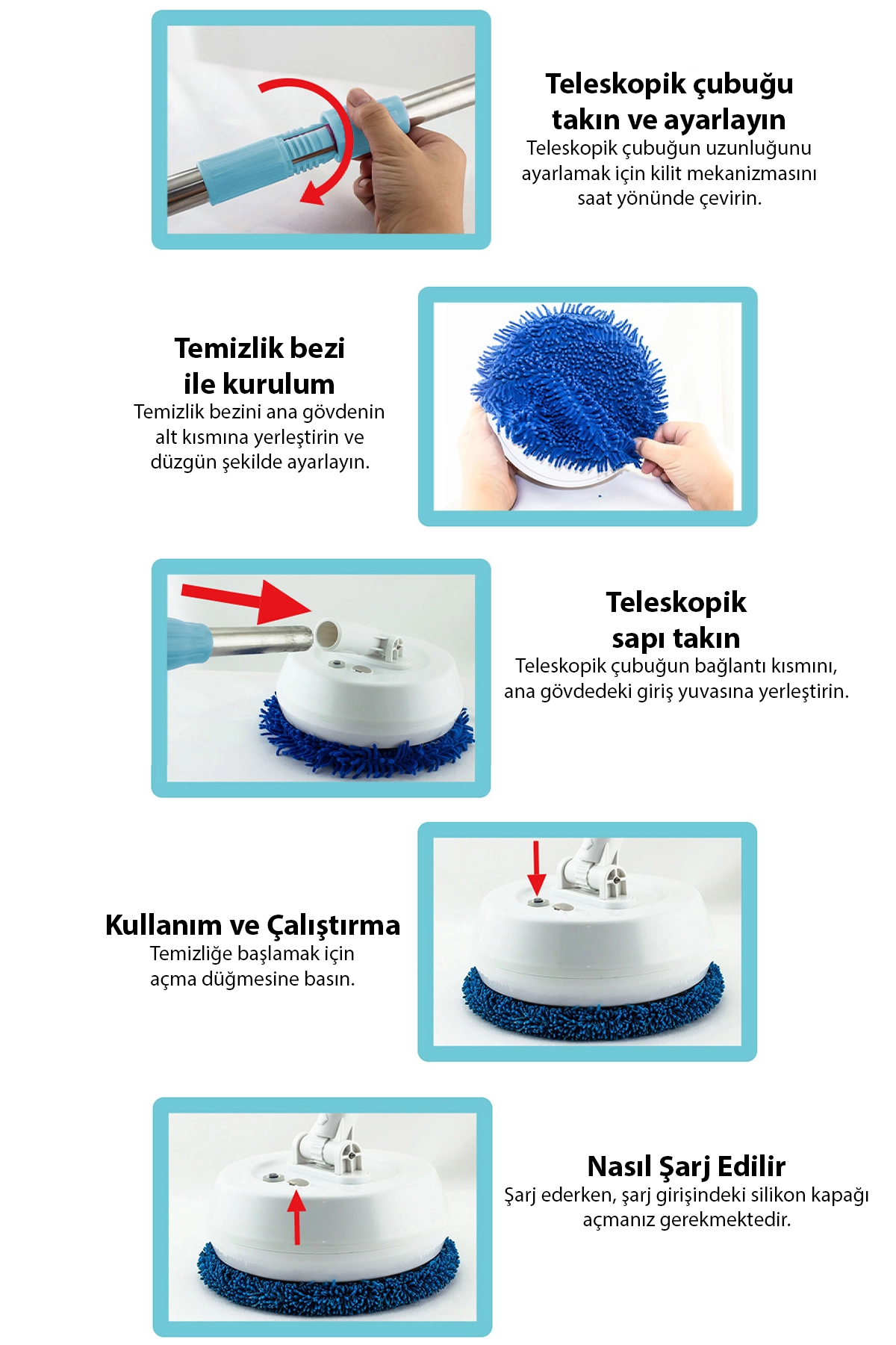 Elektrikli döner başlığı sayesinde kir ve lekeleri kolayca temizler. Islak ve kuru kullanım özelliği ile çok yönlü temizlik sağlar.