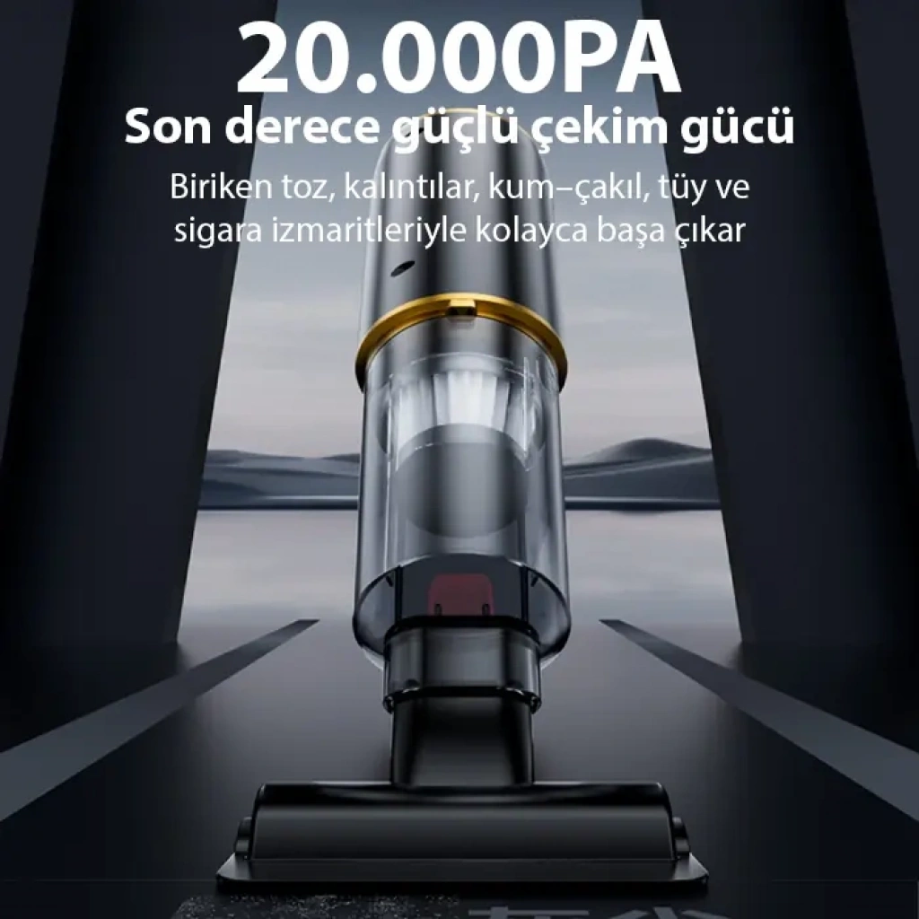 20.000 PA Güçlü Çekim: Toz, kir, kum, küçük taş, tüy ve sigara izmaritlerini kolayca çeker