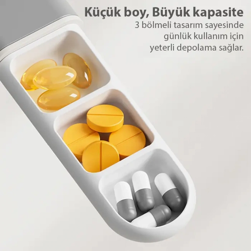 Ezere Taşınabilir 3 Bölmeli İlaç Kutusu – Nem Geçirmez, Şık ve Pratik