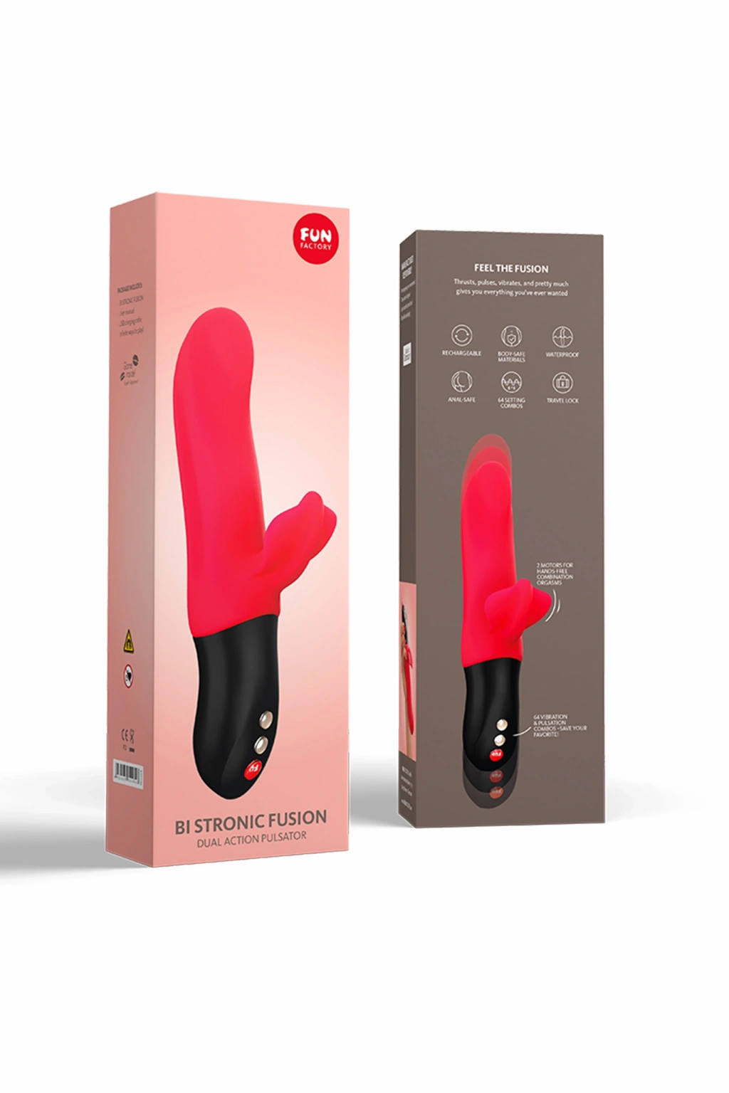 Fun Factory Bi Stronic Fusion Vibratorü mükemmel bir sevgilidir. Çok yönlülüğü şaşırtıcıdır: * Pulsatörün güçlü bir klitoral vibratör, G noktası veya prostat masajı ve vajina, labia veya anüs uyarıcısı birleştirir. * Yenilikçi çalışma prensibi, birlikte veya bağımsız olarak çalışabilen hem titreşimin keyfini çıkarmanızı sağlar. * Sezgisel kontrol paneli, anında durma da dahil olmak üzere herhangi bir arzuya hızlı bir şekilde yanıt verir. * Gelişmiş işlevselliği — parlayan pil gücü göstergesi ve kilit kilidi - eğlenceyi kontrol altında tutmaya yardımcı olur. * Su geçirmez yüzeyi, rahatlatıcı bir banyoyu birlikte kabul etmeyi asla reddetmeyecektir. * USB kablosuyla şarj edilmesi, boşaltılan oyuncağı hızla devreye sokar. Fun Factory Bı Stronic Fusion vibraörü ile sıcak orgazmlar samimi oturumların sürekli yoldaşları olacak!