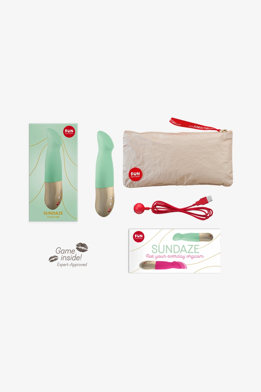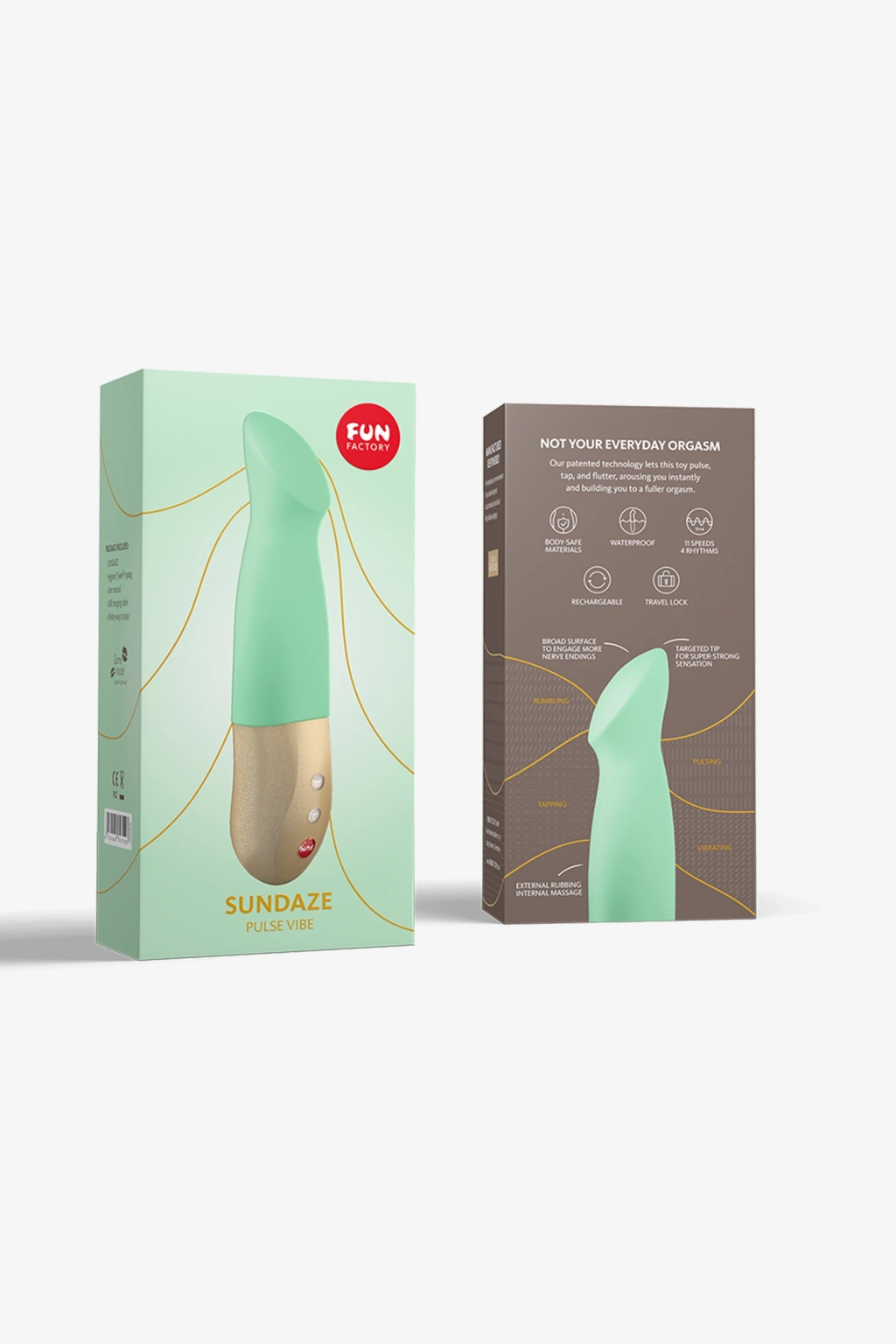 SÜPER YENİ! Evrensel model bir pakette pulsatör ve vibratör. SUNDAZE titreşimli vibratör. Havalı, sıradışı, süper, ve duyacağınız tüm eleştiriler bu değil. Bu, serimizdeki en sessiz titreşimli vibratördür. G noktasına nokta vuruşu. Yumuşak kadifemsi yüzey! Düğmeye bas ve titreşimin vibratörün kafasına nasıl aktarıldığını gör. Her erojen bölgeyi bulacak ve seni rahatlatacak. Bu ürün uzun, yoğun ve tamamen inanılmaz orgazmlar için üretilmiştir! Bazı hızlı ve yüzeysel klitoral orgazmlardan bahsetmiyoruz, ancak gerçekten tatmin edici olan derin ve tatmin edici orgazmlar sağlayan yeni ve yenilikçi bir teknolojiden bahsediyoruz. En sevdiğiniz modu ezberlemek. * Sadece 5 saniye tut. FUN düğmesine basın ve bir dahaki sefere ilk açtığınızda en sevdiğiniz modu hemen hissedeceksiniz;* Ayrı kontrol sayesinde 3 titreşim seviyesi ve 8 dalgalanma modu, 3 dinamik mod;* Şık SUNDAZE tutacağı sadece güzel değil, aynı zamanda çok fazla yağ kullanmayı sevseniz bile çok pratiktir;* SUNDAZE tamamen su geçirmezdir.