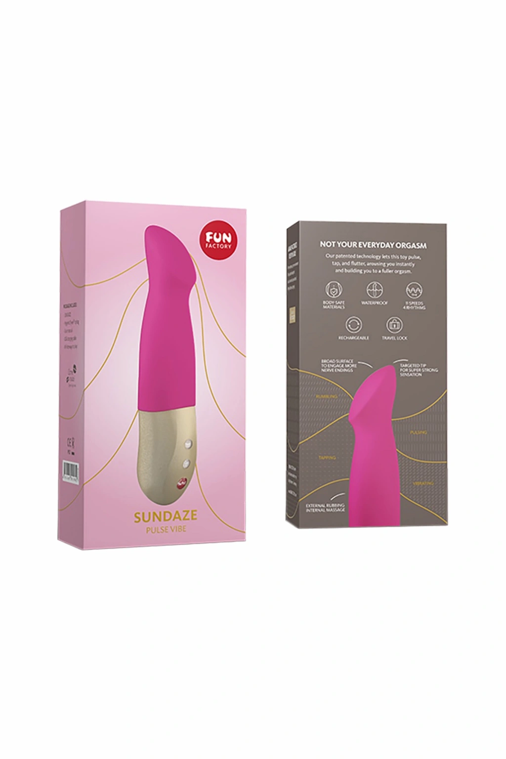SÜPER YENİ! Evrensel model bir pakette pulsatör ve vibratör. SUNDAZE titreşimli vibratör. Havalı, sıradışı, süper, ve duyacağınız tüm eleştiriler bu değil. Bu, serimizdeki en sessiz titreşimli vibratördür. G noktasına nokta vuruşu. Yumuşak kadifemsi yüzey! Düğmeye bas ve titreşimin vibratörün kafasına nasıl aktarıldığını gör. Her erojen bölgeyi bulacak ve seni rahatlatacak. Bu ürün uzun, yoğun ve tamamen inanılmaz orgazmlar için üretilmiştir! Bazı hızlı ve yüzeysel klitoral orgazmlardan bahsetmiyoruz, ancak gerçekten tatmin edici olan derin ve tatmin edici orgazmlar sağlayan yeni ve yenilikçi bir teknolojiden bahsediyoruz. En sevdiğiniz modu ezberlemek. * Sadece 5 saniye tut. FUN düğmesine basın ve bir dahaki sefere ilk açtığınızda en sevdiğiniz modu hemen hissedeceksiniz;* Ayrı kontrol sayesinde 3 titreşim seviyesi ve 8 dalgalanma modu, 3 dinamik mod;* Şık SUNDAZE tutacağı sadece güzel değil, aynı zamanda çok fazla yağ kullanmayı sevseniz bile çok pratiktir;* SUNDAZE tamamen su geçirmezdir.