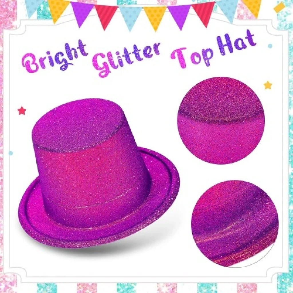 Renk: Fuşya pembe Malzeme: İthal plastik Kaplama: Parıltılı sim Beden: Standart Stil: Fötr silindir Kullanım Alanı: Parti, davet, tiyatro, kostüm