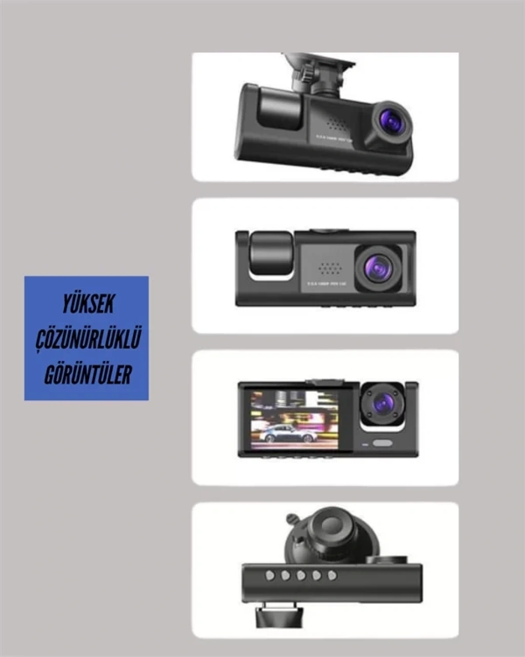 Sürüş güvenliğinizi tek açıyla sınırlamak yerine kapsamlı bir kayıt sistemiyle destekleyen bu araç kamerası, ön, iç ve arka olmak üzere üç farklı kamera ile tam koruma sağlar. Ön kamera Full HD 1080P çözünürlükte net ve akıcı görüntü kaydı alırken; 720P çözünürlüğe sahip iç ve arka kameralar hem yolcu kabinini hem de arka trafiği detaylı şekilde görüntüler. Böylece hem sürüş esnasında hem park halinde aracınızın etrafı kontrol altında olur.Gece görüş destekli mercekleri sayesinde düşük ışık koşullarında dahi net görüntü sunar. Karanlık yollarda, park alanlarında veya gece sürüşlerinde detay kaybı yaşamadan kayıt almaya devam eder. 170° geniş görüş açısı, kör noktaları minimuma indirerek yolun kenarlarını, şerit değişimlerini, yayaları ve bisikletlileri kadraja dahil eder.G-sensör teknolojisi, ani çarpma veya sert sarsıntı anlarında kritik görüntüleri otomatik olarak kilitler ve üzerine yazılmasını engeller. Bu özellik, olası kaza durumlarında önemli kayıtların korunmasını sağlar. Hareket algılama özelliği ise araç park halindeyken devreye girerek herhangi bir hareket tespit ettiğinde otomatik kayıt başlatır.2 inç LCD ekran üzerinden canlı görüntüyü izleyebilir ve geçmiş kayıtları kolayca kontrol edebilirsiniz. 32 GB Micro SD kart desteği sayesinde uzun süreli kayıt imkânı sunar. Suya ve toza dayanıklı sağlam kasası ile farklı hava koşullarında güvenli kullanım sağlar.Hem günlük sürüşlerde hem de park güvenliğinde kapsamlı koruma arayan kullanıcılar için tasarlanmış bu üç kameralı araç kayıt sistemi, yolculuklarınızı güvence altına alır.