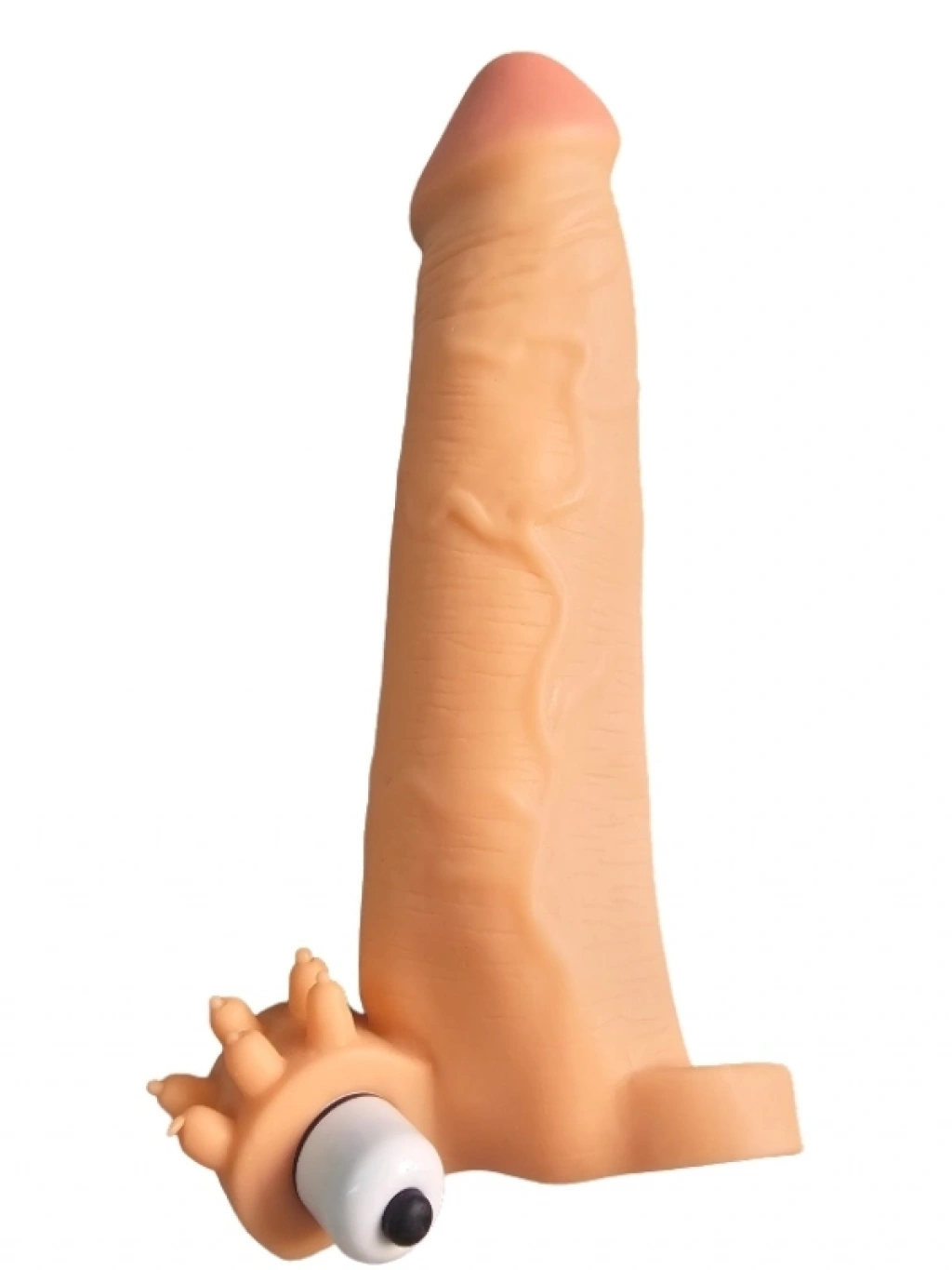 Gerçekçi Et Dokusunda Titreşimli Testis Halkalı Noktalı Penis Kılıfı - 20cm, yoğun haz ve maksimum gerçekçilik arayanlar için tasarlanmıştır. Yumuşak ve esnek yapısı sayesinde kolayca takılabilir, iç yüzeyindeki özel dokusu ise partnerinize daha yoğun bir his verir. 20 cm uzunluğa sahip olan bu kılıf, titreşim özelliği ile zevki katlayarak çok daha farklı bir deneyim sunar. Testis geçmeli tasarımı sayesinde kullanım sırasında kayma veya çıkma yaşatmaz, aynı zamanda ekstra güvenli ve rahat bir deneyim sağlar. Titreşim motoru ile farklı hızlarda uyarım sağlanabilir, hem tek başına hem de partnerli kullanıma uygundur. Hijyen açısından kolayca temizlenebilir ve defalarca kullanılabilir. İster performansınızı artırmak, ister yeni deneyimler yaşamak için tercih edebilirsiniz.
