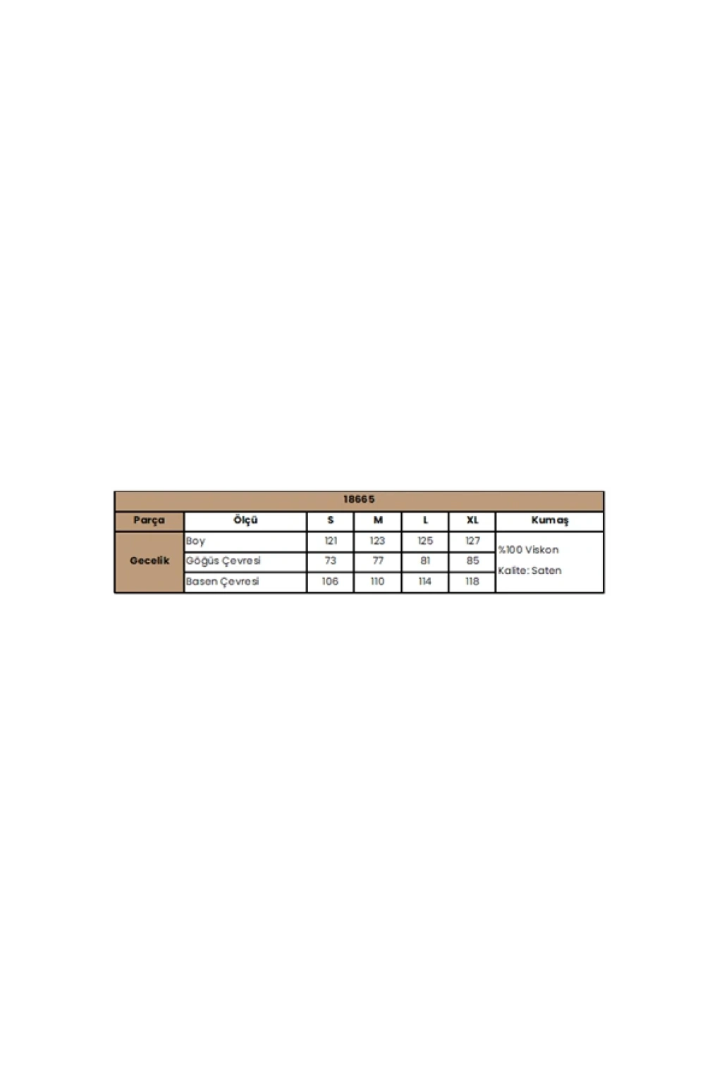 Gecelik: Beyaz renklidir, derin V Yaka dekoltelidir, kalın askılıdır, yakası ve askı kenarları dantellidir, saten kumaştır.