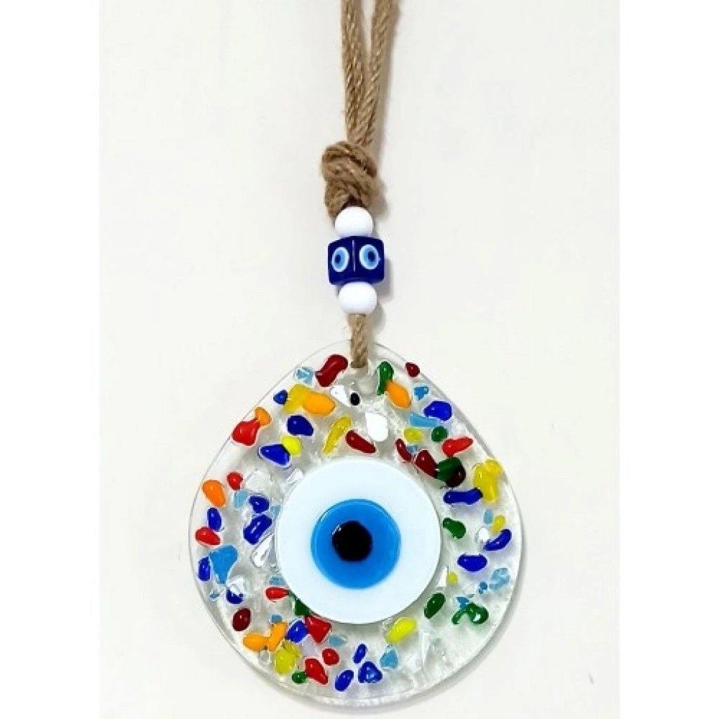 Gökkuşağı Renklerinde Nazar Boncuklu Damla Model Şeffaf Cam Duvar SüsüGökkuşağı, umudu, pozitif enerjiyi ve canlılığı simgeleyen renkleriyle tasarlanan bu nazar boncuklu damla model şeffaf cam duvar süsü, dekorasyona ferah ve neşeli bir dokunuş katar. Nazar boncuğu figürü, kötü enerjilere karşı koruyucu bir sembol olarak tasarımın merkezinde yer alırken gökkuşağı renkleri ürüne modern ve dikkat çekici bir estetik kazandırır.Ürünümüz tamamen el yapımıdır. Şeffaf camın berrak ve parlak yapısı, renkli detaylarla birleşerek ışığı zarif bir şekilde yansıtır ve bulunduğu ortama aydınlık bir atmosfer sunar. El emeğiyle üretilmesi sayesinde her ürün kendine özgü detaylara sahiptir ve benzersizdir.Damla model cam duvar süsümüz 12 santimetre eninde ve 13 santimetre boyundadır. İp dahil toplam uzunluğu 26 santimetredir. Hafif ve dengeli yapısı sayesinde duvara, kapıya, pencere önüne veya dar alanlara kolaylıkla asılabilir.Ev, ofis ve iş yeri dekorasyonları için ideal olan bu şeffaf cam duvar süsü; yeni ev hediyesi, renkli hediyelikler ve nazar temalı anlamlı armağanlar için şık ve estetik bir hediyelik alternatifi sunar