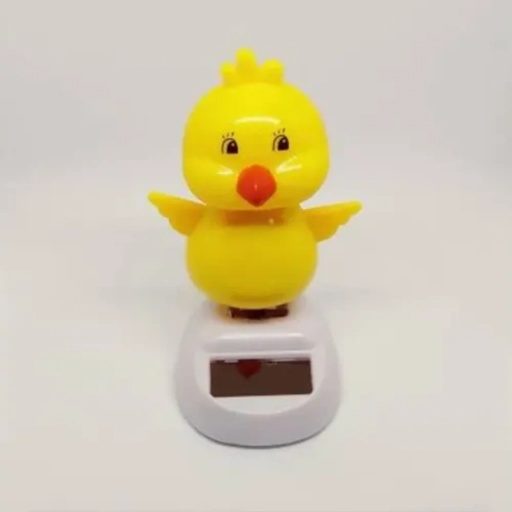 Solar Dans Eden Civciv: Enerjisi Bitmeyen Minik Mutluluk KaynağıArabanızın gösterge paneline, ofis masanıza veya evinizin pencere kenarına anında neşe katacak, Güneş Enerjili Solar Dans Eden Civciv figürü ile tanışın! 10x6 cm boyutundaki bu sevimli figür, çalıştırmak için hiçbir pile ihtiyaç duymaz. Sadece üzerine düşen güneş ışığı veya güçlü bir aydınlatma ile enerjisini alır ve oynamaya başlar.✨ Neden Bu Civciv Vazgeçilmez?Sonsuz Enerji: Pil derdi yok! Güneş enerjisi (solar panel) ile çalışır, çevre dostu ve %100 ekonomiktir. Bir kere alırsınız, ömür boyu dans eder.Neşe Kaynağı: Başını sürekli sallayan dans figürü, bulunduğu ortama anında pozitif enerji ve mizah katar. Sadece çocuklar için değil, yetişkinler için de harika bir stres azaltıcıdır.Kolay Sabitleme: Altında bulunan güçlü yapışkanlı bant sayesinde araba, pencere pervazı, masa üstü gibi her türlü düz yüzeye kolayca sabitlenebilir.İdeal Boyut: 10x6 cm boyutuyla görüş alanını kapatmaz, her yere sığar ve sevimli detaylarıyla dikkat çeker.