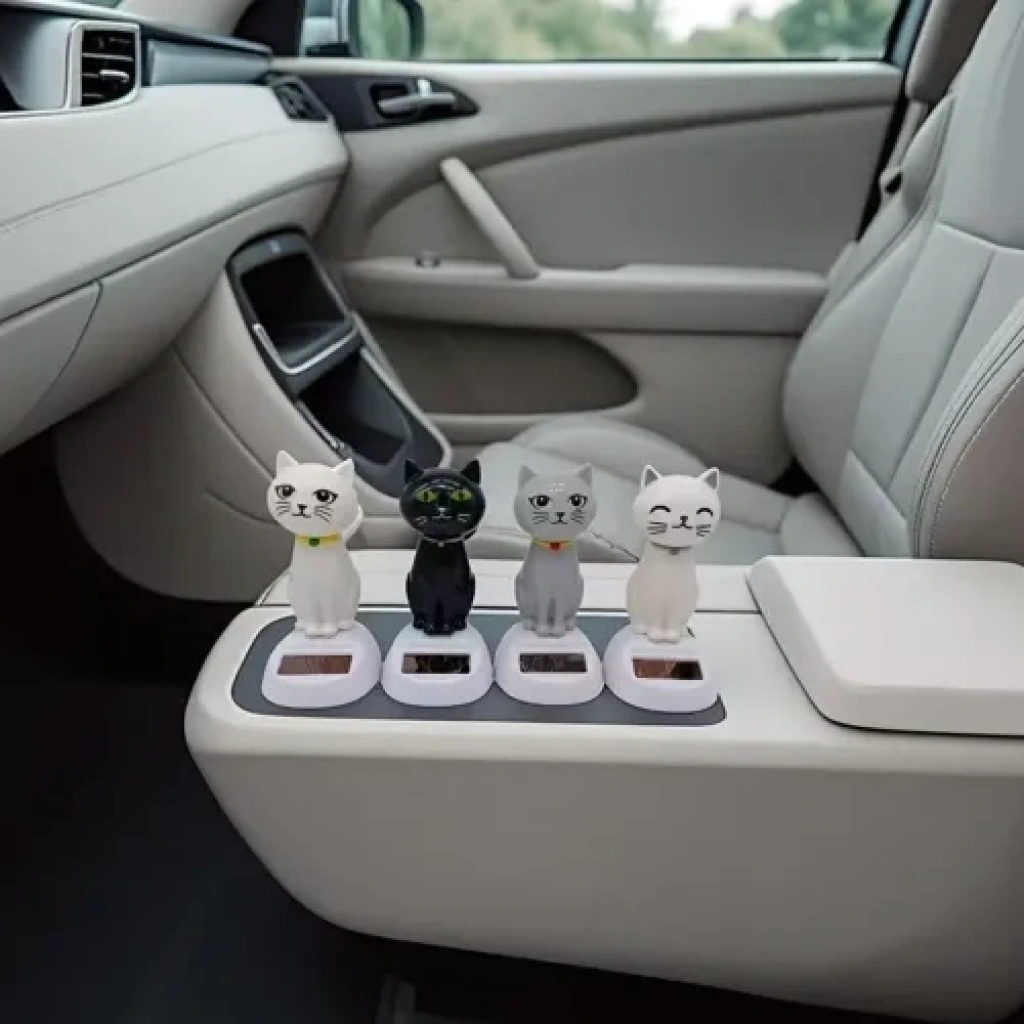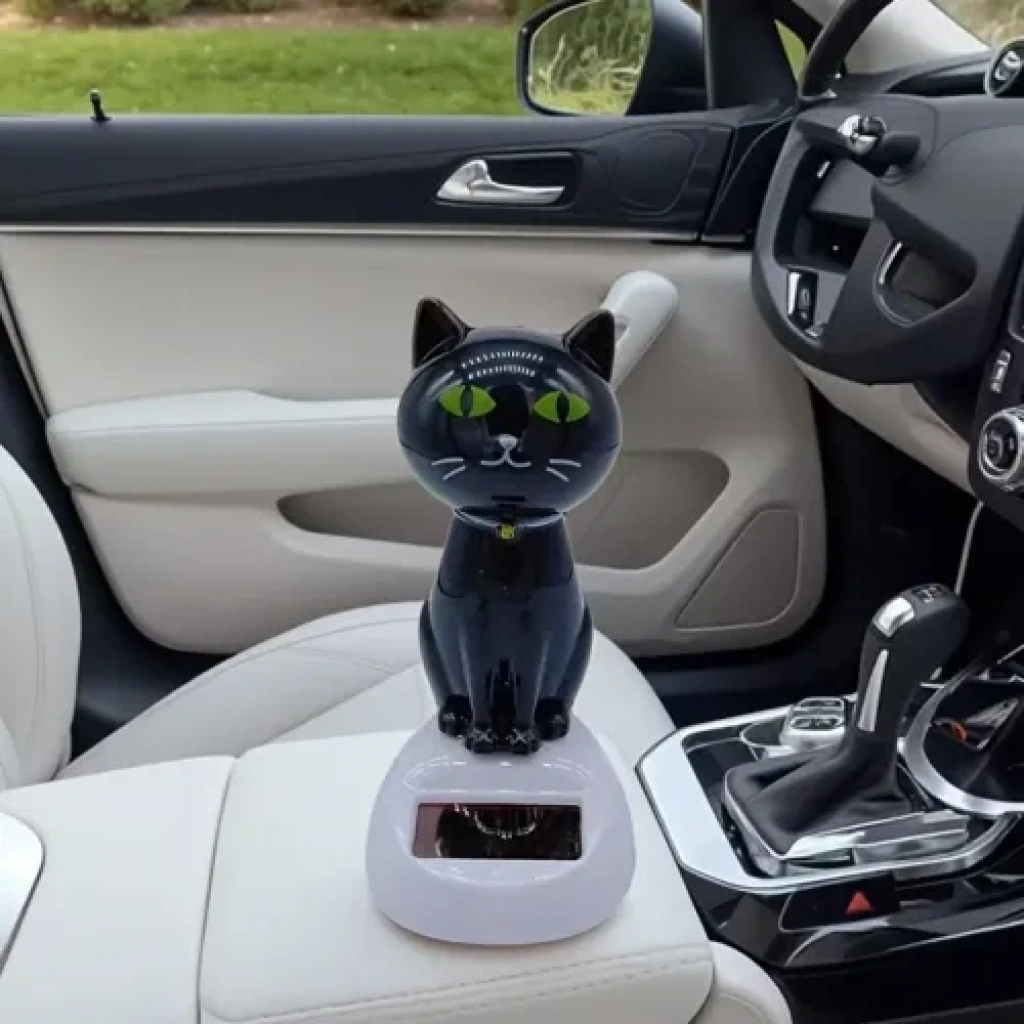 Güneş Enerjili Solar Sallanan Kedi Figürü (10 cm) - Araç İçi ve Masaüstü Sevimli DekorasyonArabanızın veya çalışma masanızın en sevimli üyesi olmaya aday! Güneş Enerjili Solar Sallanan Kedi Figürü, ışık enerjisini kullanarak sürekli ve eğlenceli bir şekilde sallanır, böylece bulunduğu ortama pozitif bir hareket ve neşe katar. Pil ve kablo gerektirmeyen bu çevre dostu aksesuar, kedi severler için vazgeçilmez bir dekorasyon parçasıdır.Ürünün Temel Özellikleri:Solar Enerjiyle Çalışır: Tabanındaki küçük solar panel sayesinde güneş ışığı veya güçlü bir iç mekan aydınlatması ile çalışır. Pilsiz ve Ekonomiktir.Eğlenceli Hareket: Işık aldığında figürün kafası sürekli sallanır (bobble head), bu da araba kullanırken veya çalışırken yüzünüzü güldürür.İdeal Boyut: Yaklaşık 10 cm yükseklik ve 5 cm genişliği ile araç gösterge panosu (Görsel 2), cam kenarı, ofis masası veya komodin gibi alanlarda fazla yer kaplamadan şık durur.Çeşitli Modeller: Siyah, beyaz ve gri gibi karışık renk seçenekleriyle sunulur (Görsel 1), dekorasyon zevkinize uygun olanı seçebilir veya koleksiyon yapabilirsiniz.Mükemmel Oto Aksesuarı: Şık tasarımı ve sallanan hareketiyle araç içi dekorasyonun en popüler ve sevimli parçalarından biridir.Bu solar sallanan kedi figürü ile aracınıza veya ofisinize minik, hareketli ve neşeli bir dost katın!