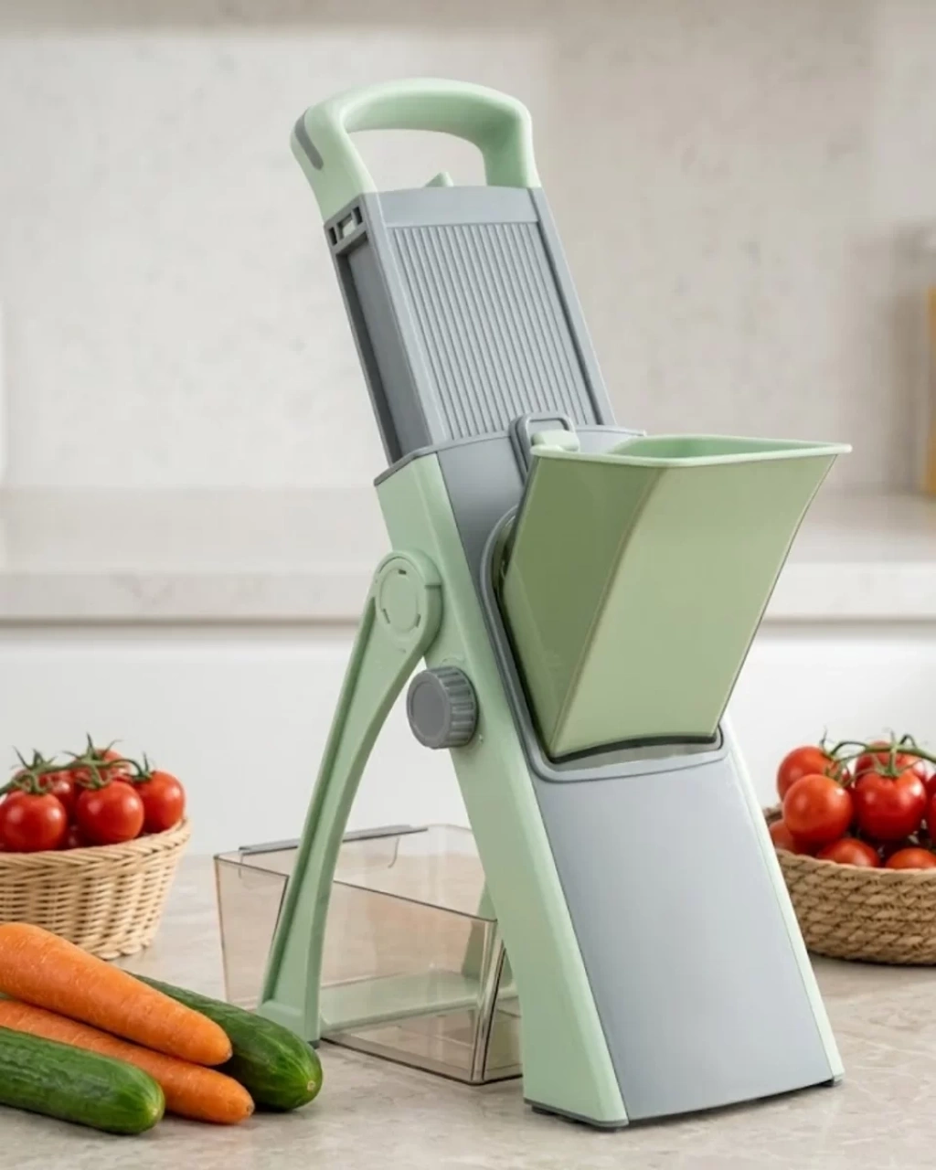 Yüksek kaliteli çelikten üretilmiş el rendesi, sağlam yapısı sayesinde uzun ömürlü kullanım sunar. Paslanmaz doğrama bıçakları, sebze ve meyveleri kısa sürede ve eşit şekilde dilimlemenize olanak tanır. Günlük mutfak işlerinde pratiklik arayan kullanıcılar için ideal bir yardımcıdır.Üst aparatı sayesinde birkaç basit hareketle ürünleri istediğiniz kıvama getirebilirsiniz. Güvenliği ön planda tutan tasarımı, ellerinizin bıçaklara yaklaşmasını engeller. Bu özellik, özellikle yoğun mutfak kullanımında büyük avantaj sağlar.Katlanabilir gövde yapısı, yer tasarrufu sağlar. Fırça ve hazne desteği sayesinde hem temizlik hem de düzen kolaylaşır. Kolay temizlenebilir yüzeyi, hijyenik kullanım sunar.