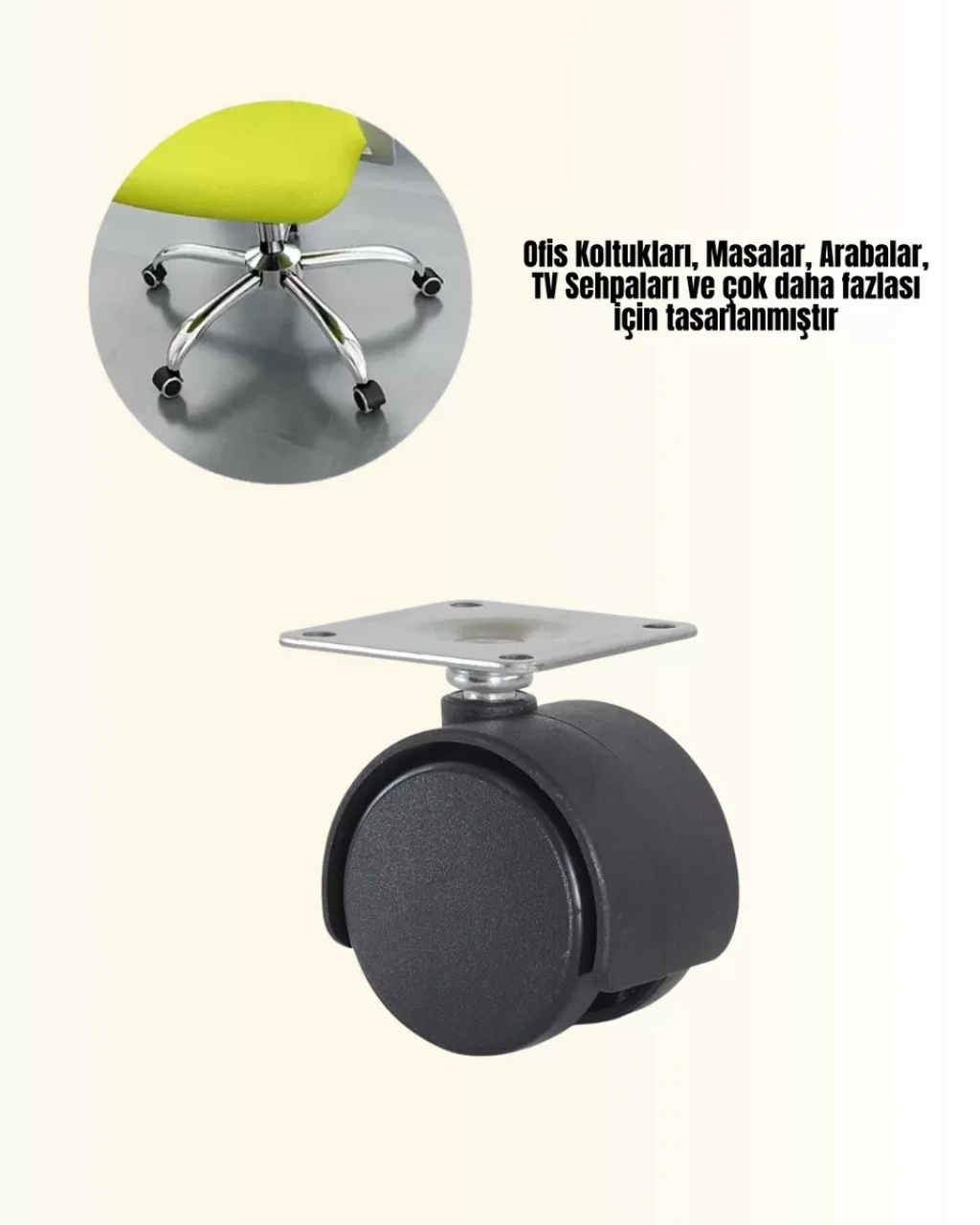 Kilitsiz mobilya tekerleği seti, modern yaşam alanları için pratik bir çözümdür. 6 cm çapındaki tekerlekleri sayesinde mobilyalar kolayca taşınabilir ve konumlandırılabilir.Halı, beton ve sert zeminlerde dengeli kullanım sunar. Sessiz çalışması sayesinde ev ve ofis ortamlarında rahatsızlık oluşturmaz. Kilit mekanizması olmadığı için hızlı hareket gerektiren alanlarda avantaj sağlar.Paket içeriği 4 adet tekerlekten oluşur.