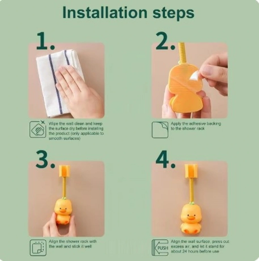 Sevimli Hayvan Figürlü Banyo Duş Başlığı TutucuDuvara monte edilebilen ve farklı hayvan figürlerinden oluşan sevimli duş başlığı ve banyo aksesuarları askıları görülüyor. Bu tür ürünler, banyo düzenini kolaylaştırmak ve aynı zamanda banyoya eğlenceli bir hava katmak için idealdir. Askılar, vakumlu veya yapışkanlı montaj yöntemi ile kolayca monte edilebilir ve farklı banyo gereçlerini asmak için kullanılabilir.Ürün Açıklaması:Bu sevimli hayvan figürlü banyo askıları, duş başlığı, banyo süngeri, lif ve diğer banyo aksesuarlarını düzenli tutmak için mükemmel bir çözümdür. Kolay montaj için yapışkanlı veya vakumlu olarak tasarlanmıştır; duvarınıza zarar vermeden istediğiniz yere monte edebilirsiniz. Dayanıklı malzemeden üretilmiş olup, suya ve neme karşı dayanıklıdır. Şirin ördek, penguen gibi figürleri ile banyonuza eğlence katarken, aynı zamanda işlevsellik sunar. Her yaş için uygundur ve özellikle çocukların banyo zamanlarını daha keyifli hale getirir.PAKET İÇERİĞİ:1 ADET Hayvan Figürlü Duş Başlığı tutucu