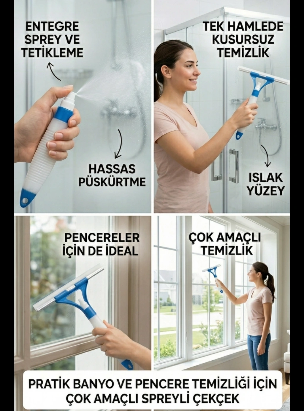 - Çok Amaçlı Kullanım: Sadece pencereler için değil; duşakabin camları, banyo fayansları ve araç camları için de idealdir.
